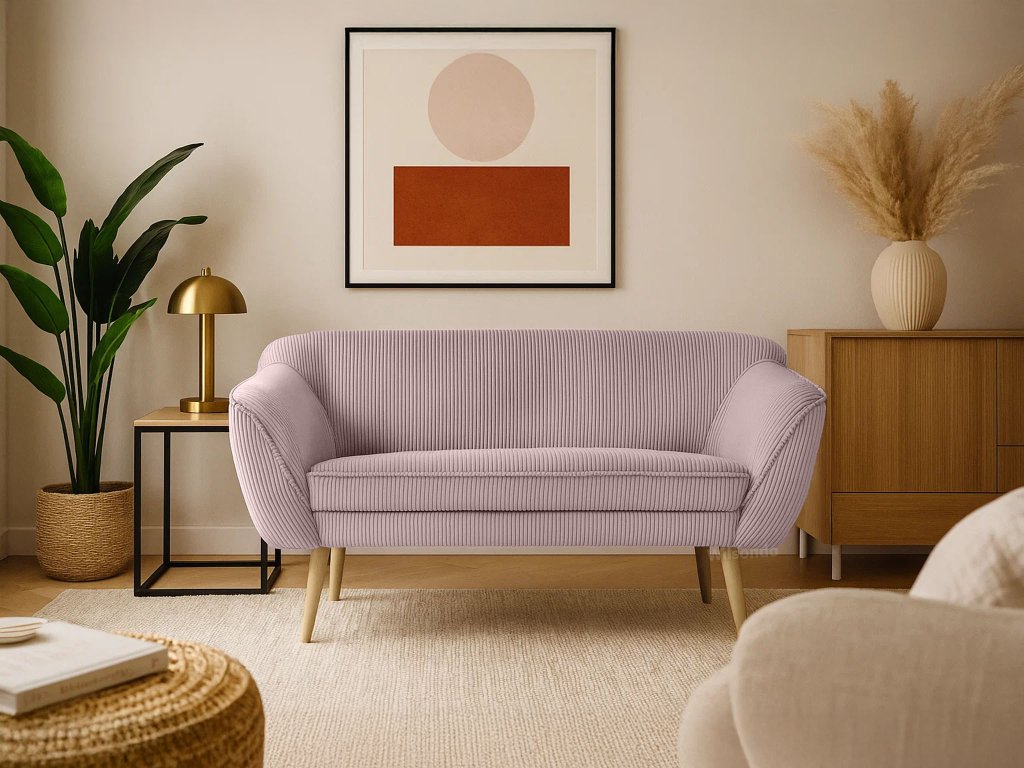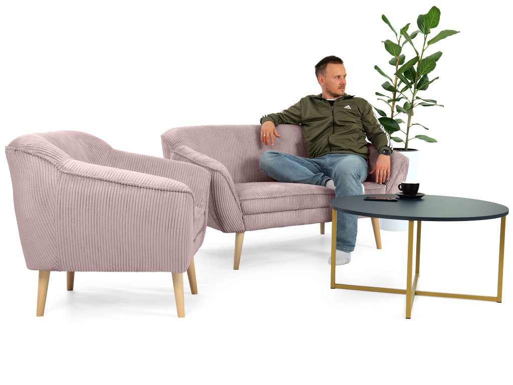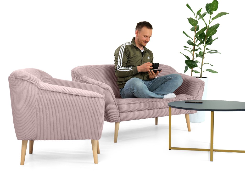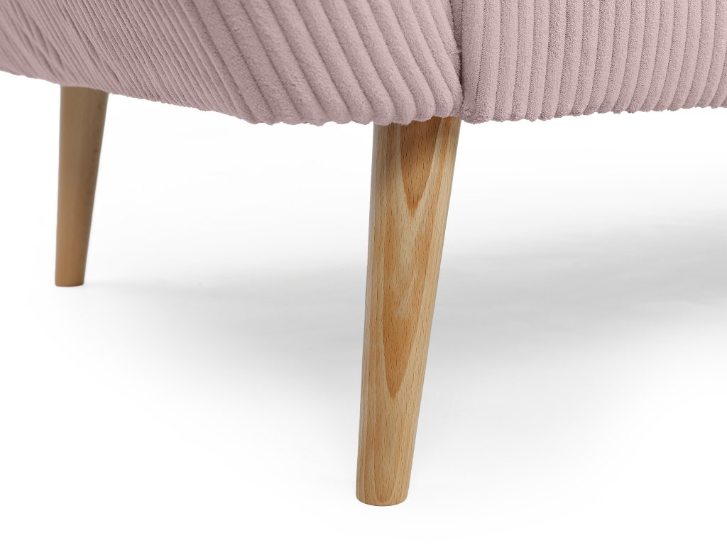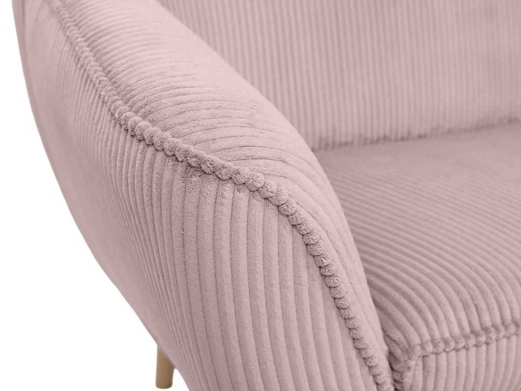Amennyiben egy elegáns, de emellett kényelmes bútort keres a kétszemélyes rózsaszín DORY kárpitozott kanapé igazán jó választás lehet. A kanapé háttámlája T25-ös habbal készült, hogy megfelelő támaszt nyújtson pihenés közben, míg az ülőfelülethez T30-as habot használtak fel. Ez az elegáns kanapé tömör fából készült lábakkal rendelkezik natúr színben. Gyönyörű és ellenálló kordbársony Lincoln szövettel kárpitozott, amely érdekes csíkos struktúrával, luxusos kinézettel és puha tapintással rendelkezik. A rózsaszín színváltozatnak köszönhetően a kanapé tökéletes választás lehet minden elegáns nappaliba.