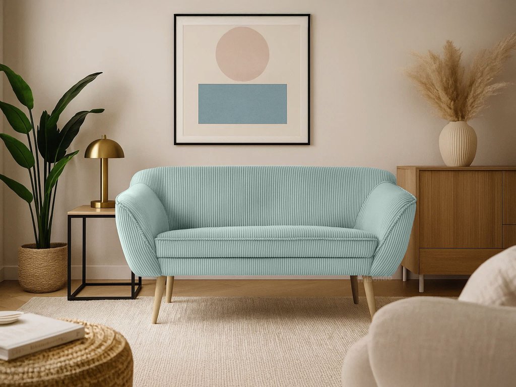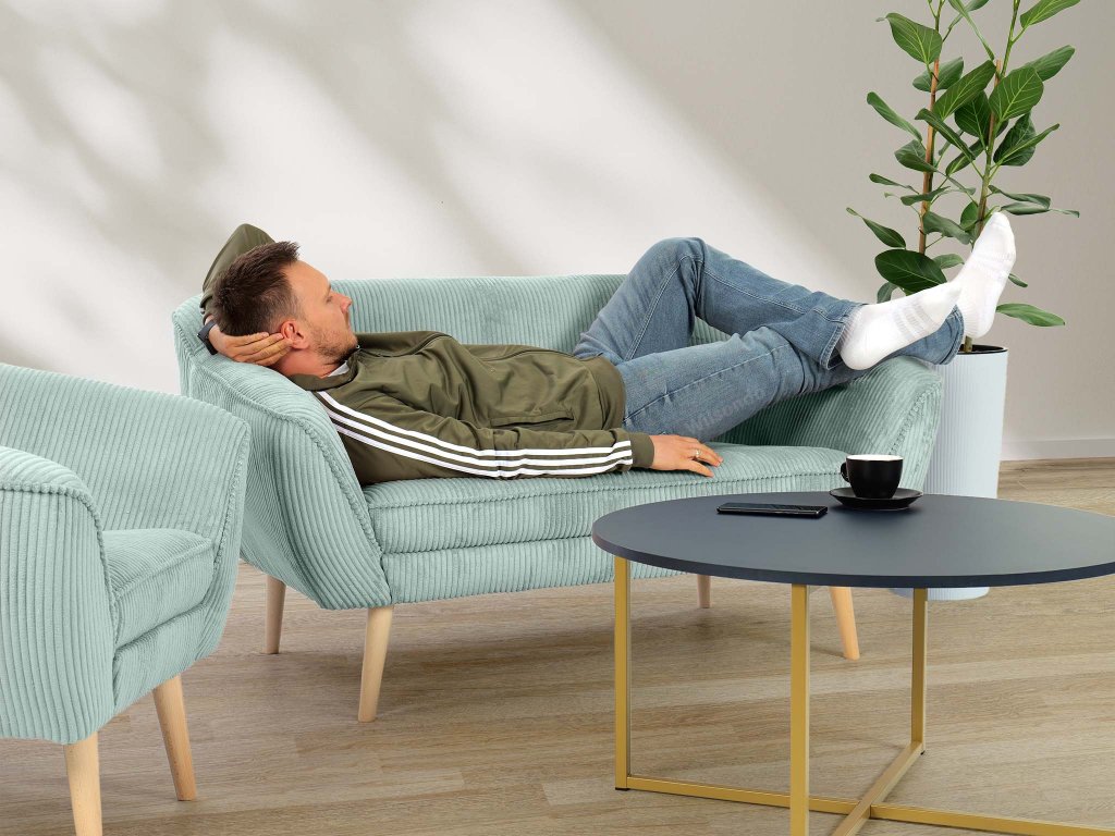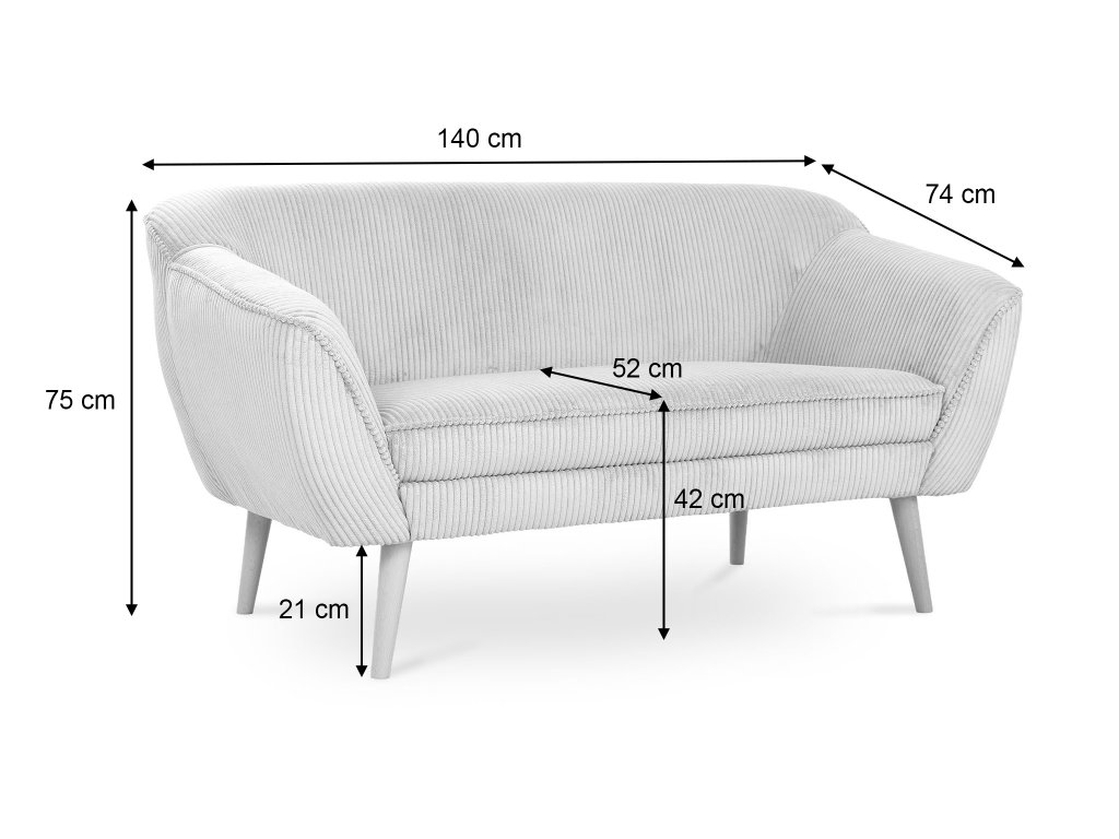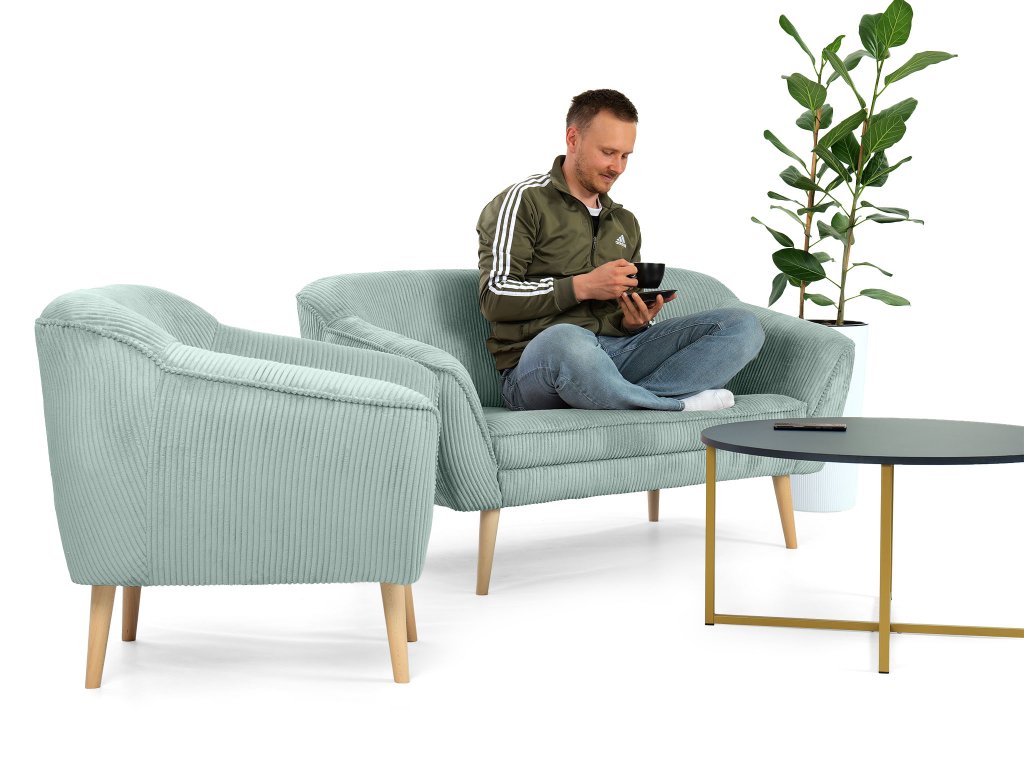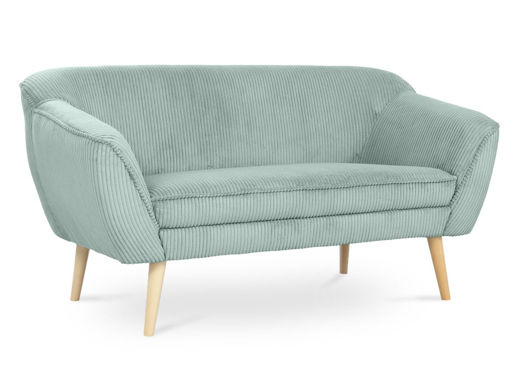 A kétszemélyes mentazöld DORY kárpitozott kanapé a színének hála felragyogtat majd minden szobát. A kanapé háttámlája T25-ös habbal készült, hogy megfelelő támaszt nyújtson pihenés közben, míg az ülőfelülethez T30-as habot használtak fel. Ez az elegáns kanapé tömör fából készült lábakkal rendelkezik natúr színben. Gyönyörű és ellenálló kordbársony Lincoln szövettel kárpitozott, amely érdekes csíkos struktúrával, luxusos kinézettel és puha tapintással rendelkezik. A mentazöld színváltozatnak köszönhetően a kanapé tökéletes választás lehet minden elegáns nappaliba.