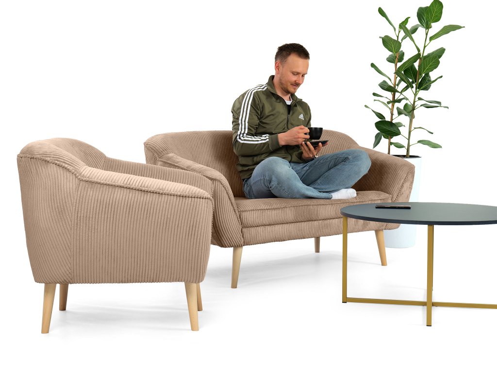 A világosbarna kordbársony szövettel kárpitozott DORY fotel otthona bármelyik szobájában megtalálja a helyét. Ellenálló szerkezete és profilozott háttámlája van. Az ülőfelület T30-as, míg a háttámla T25-ös habbal rendelkezik. Minőségi anyagokból készült és már évek óta tesztelt formával rendelkezik, csak most új köntösbe bújtatva. A fotelhez tartozó párna rész a fotel része, nem lehet kivenni. Gyönyörű és ellenálló kordbársony Lincoln szövettel kárpitozott, amely érdekes csíkos struktúrával, luxusos kinézettel és puha tapintással rendelkezik. A fotel jól mutat a nappaliban, de az előszobában vagy a fésülködő asztal mellett is megállja a helyét. A lábtartóval kiegészítve pedig garantálva lesz a kényelme.