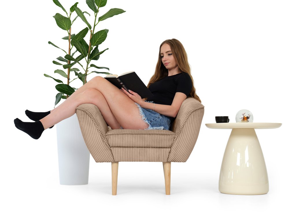 DORY kordbársony fotel - világosbarna