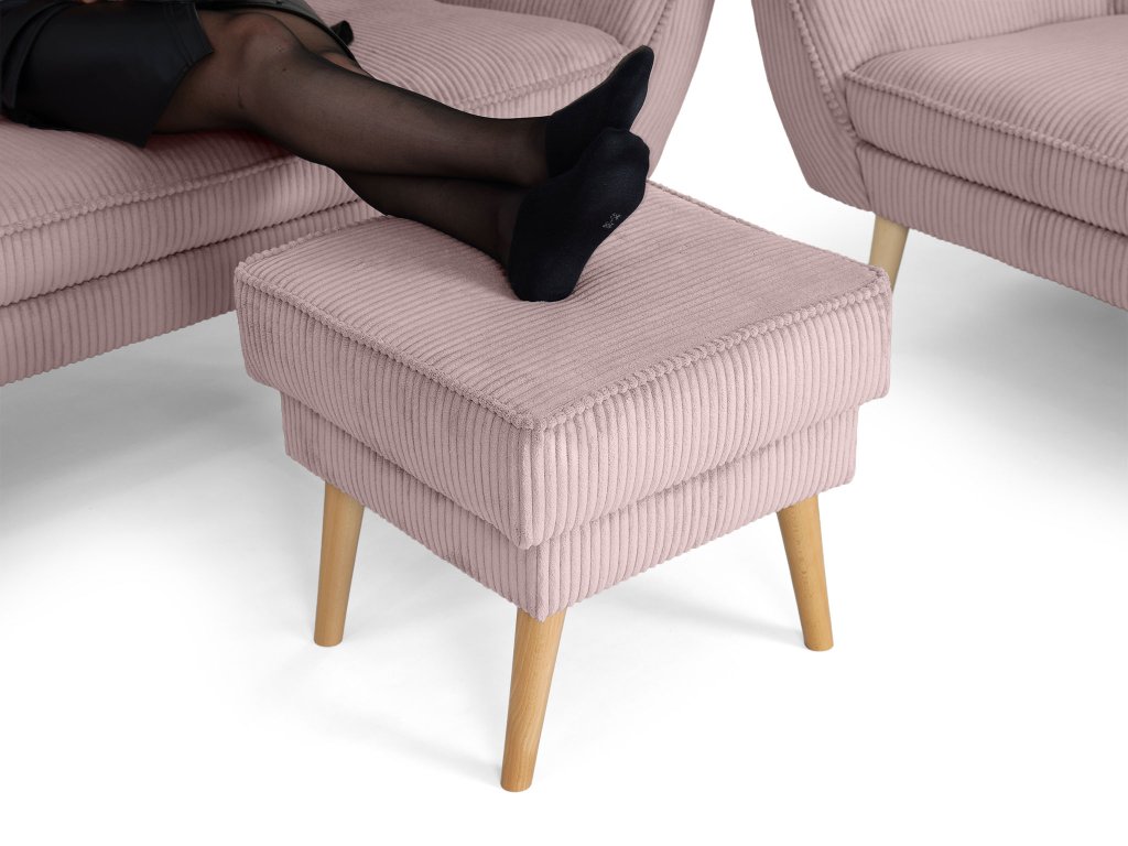 A rózsaszín DORY lábtartó biztosan nem hiányozhat a DORY kollekció darabjai mellől. A lábtartónak köszönhetően kényelmesen el tud helyezkedni és a lábát is fel tudja tenni. A praktikus puffnak köszönhetően rendelkezésre áll majd még egy plusz hely vendégek érkezésekor. A puff minőségi anyagokból készül. Ez az elegáns lábtartó tömör fából készült lábakkal rendelkezik natúr színben. A Lincoln típusú szövet kellemes és lágy tapintású, különleges csíkos szerkezettel.