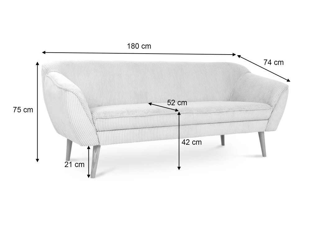 - Háromszemélyes kanapé mérete (SzéxMaxMé): 180 x 75 x 74 cm