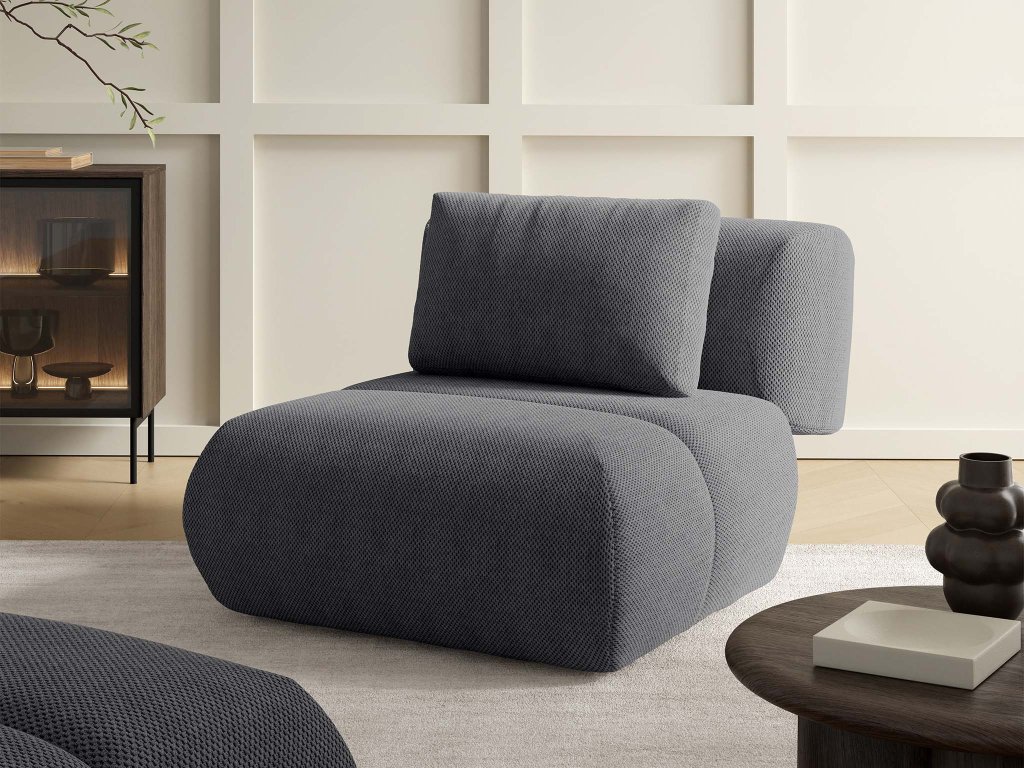 Sötétszürke színváltozatban készült egyedi kinézettel rendelkező DOT fotel, amely még praktikus funkcióval is meglepi majd. Letisztult, minimalista formája azonnal magára vonja a figyelmet. Nagy előnye pedig az okosan megtervezett részletekben rejlik. A fotel pillanatok alatt átalakítható egy kényelmes ottománná / puffá.