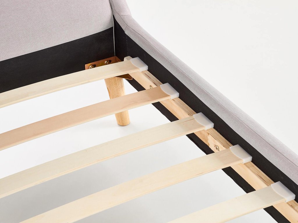 Különleges és gyönyörű szürke Elanda franciaágy, amely minden hálószobába ideális választás. Az ágy minőségi anyagokból készült, amelyek garantálják a hosszú élettartamát. Nagyon ellenálló és kényelmes. Az ágy stabil tömör fából készült kerettel és lamellás ágyráccsal kapható. Az egyes lamellák műanyag papucsokba vannak belehelyezve. A lamellás ágyrácshoz habmatrac vásárlását ajánljuk. A stabil tömör fa lábak biztosítják az ágy stabilitását. Natúr fa színben készülnek, ellenállóak a karcolásokkal szemben és remekül néznek ki a kárpitozott ággyal. Az egész ágy szürke szövettel kárpitozott, amely ellenálló a sérülésekkel és a szennyeződésekkel szemben. Az ágy háttámlája enyhén meg van dőlve és steppeléssel díszített, amely eleganciát kölcsönöz az egész ágynak. A hálószoba az a hely, ahol harmóniának és nyugalomnak kell uralkodnia. Az időtálló ELANDA franciaágyunk megállja majd a helyét minden hálószobában és biztosítja kényelmét.