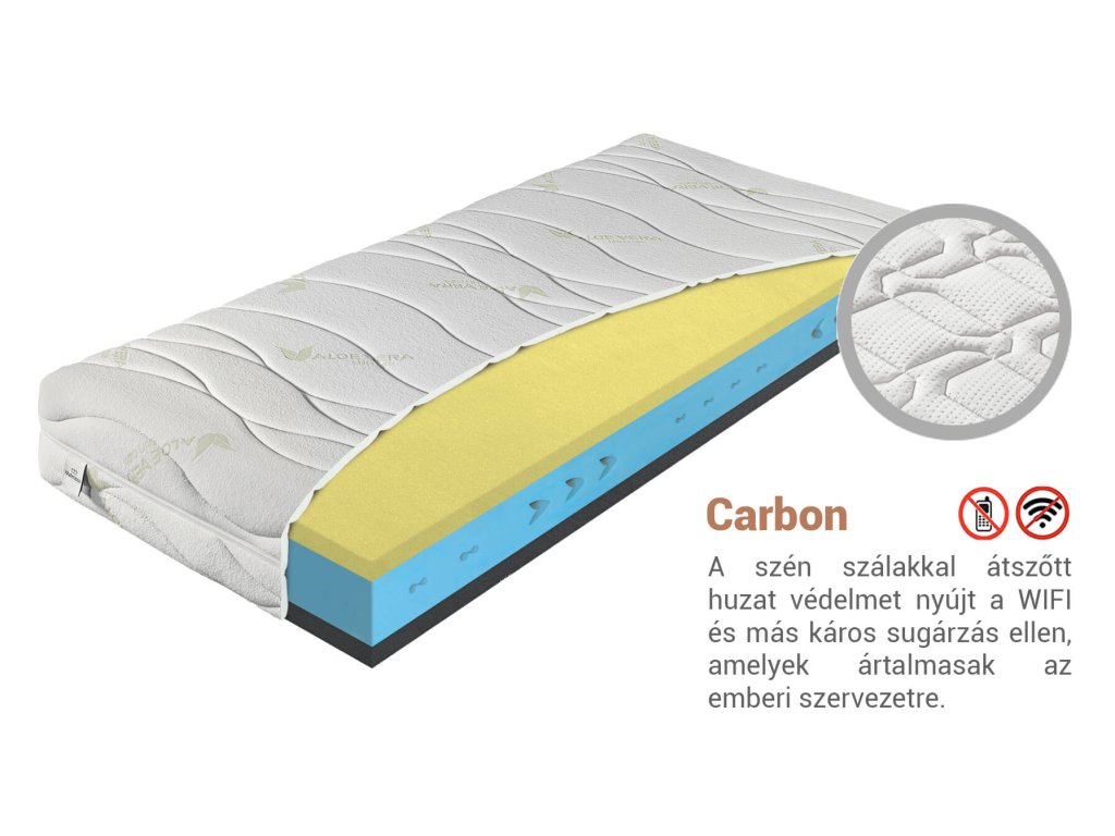 35 kg/m3 anyagsűrűségű hab, speciális szellőzéssel és 7 keménységi zónával. A hab összetétele garantálja a magas terhelhetőséget és azt, hogy idomul a test formájához.