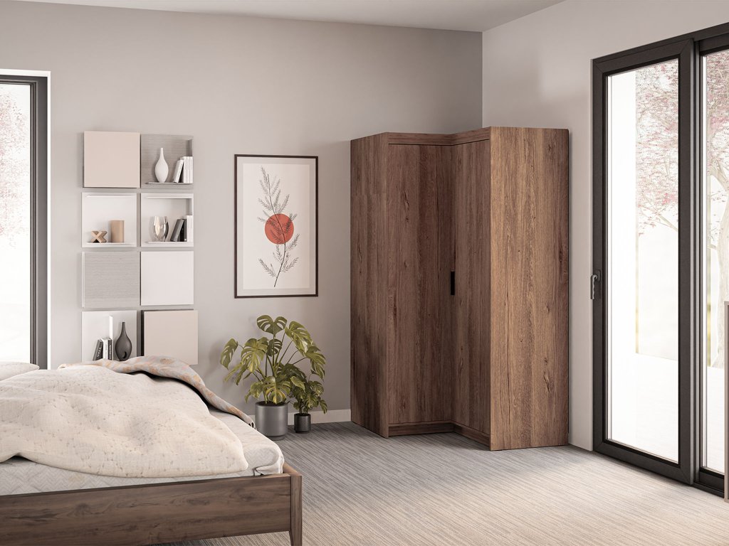 A stílusos és praktikus Elenas 2D sarokgardróbszekrény lefkas tölgy dekorban ideális megoldás a hely hatékony kihasználására. Sötétebb fa kivitele elegáns megjelenést kölcsönöz, és kifinomult hangulatot teremt otthonában.
