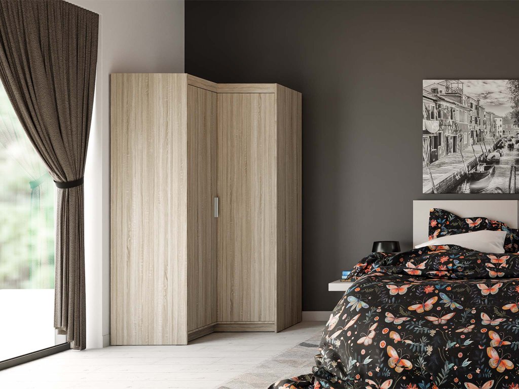 Adjon hálószobájának otthonos és természetes megjelenést a sarokszekrény Elenas 2D tölgy sonoma dekorban. Hatékonyan kihasználja a szoba sarkát, így helyet takarít meg, miközben elegendő tárolóhelyet kínál.