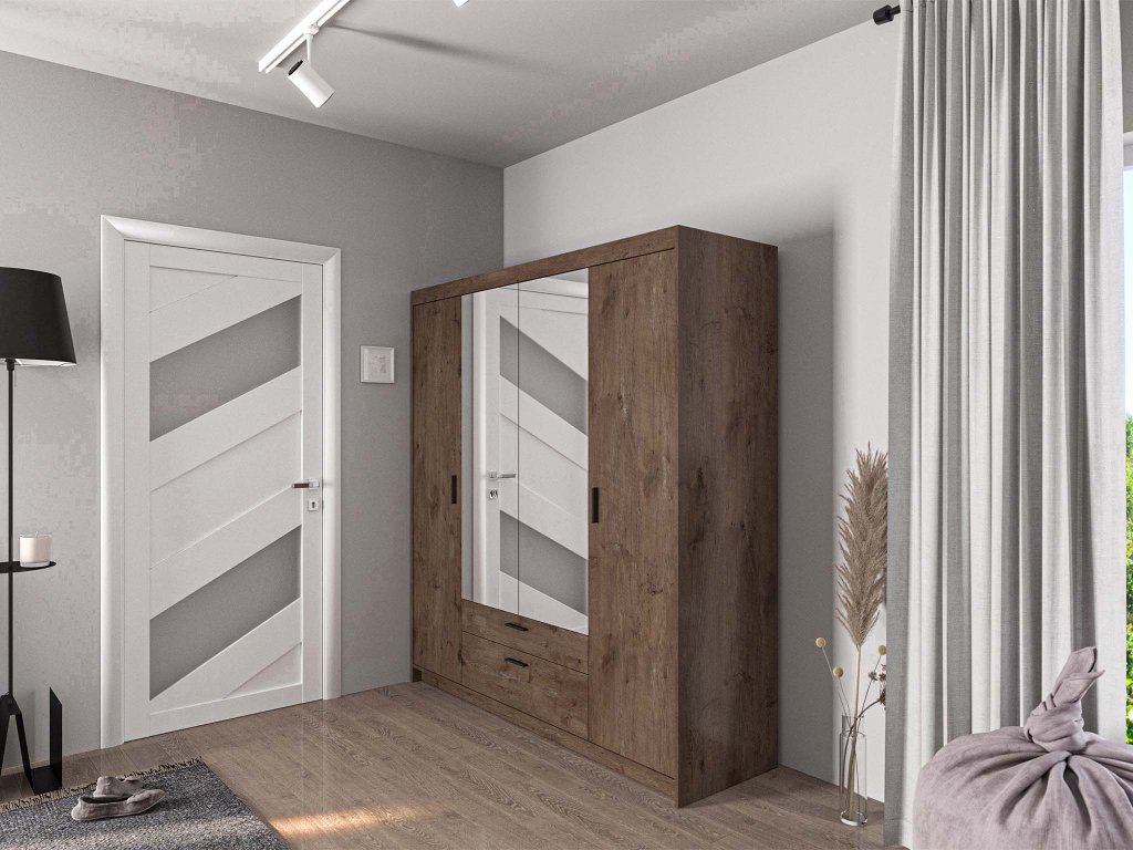 A hálószobai szekrény kiváló minőségű anyagokból készült, időtálló dizájnja pedig otthonos légkört teremt hálószobájában. A szekrény élei melamin bevonattal vannak ellátva, amely növeli ellenálló képességét a sérülésekkel szemben. Az Elenas 4D tükrös gardróbszekrény ideális választás hálószobába, előszobába, gyerekszobába vagy gardróbba.