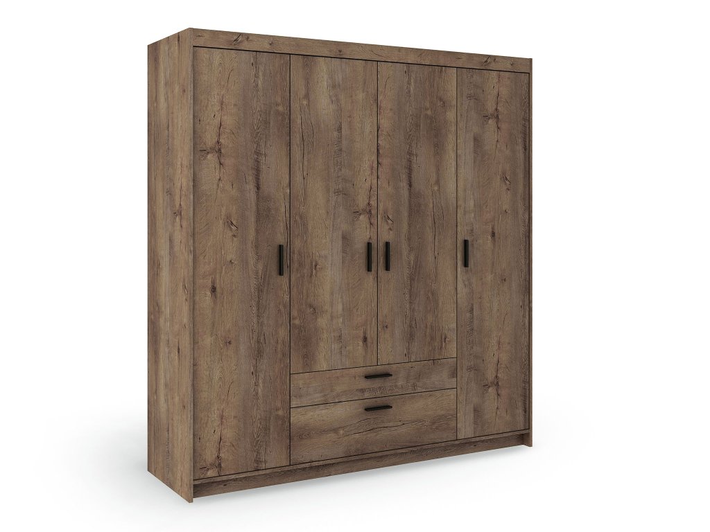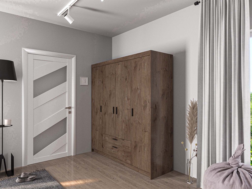 Az Elenas 4D szekrény hat polcot biztosít a hajtogatott ruhák átlátható tárolására. Emellett két akasztórúddal rendelkezik kabátok, ruhák és dzsekik számára, valamint két praktikus fiókkal az apróbb tárgyak, például zoknik, fehérneműk vagy sálak számára. Ennek köszönhetően minden a helyére kerül, és időt takaríthat meg az öltözékek keresésekor. A lefkas tölgy dekor természetes és harmonikus hangulatot kölcsönöz a belső térnek. Az Elenas 4D gardróbszekrény funkcionális eleme lehet hálószobájának, előszobájának, gyerekszobájának vagy vendégszobájának. A kiváló minőségű anyagok és a precíz kidolgozás garantálják a hosszú élettartamot és a karcállóságot.