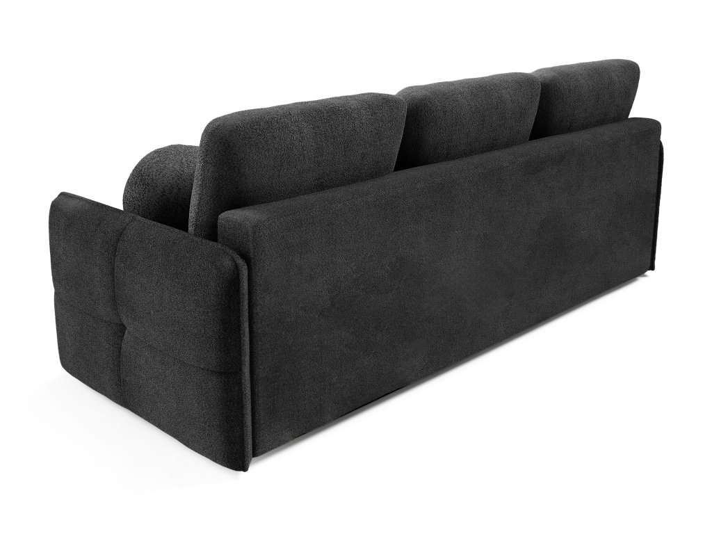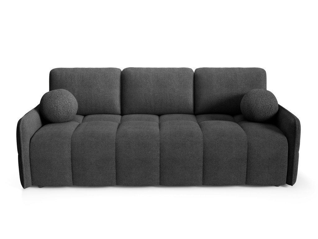 Az Elia sötétszürke kanapé praktikus ágyazható funkcióval rendelkezik, így néhány mozdulattal kényelmes fekhellyé alakítható a vendégek számára, de ideiglenes fekhelyként is szolgálhat. A beépített ágyneműtartó ideális helyet kínál a takarók, az ágyneműk vagy a szezonális kiegészítők tárolására, így a nappali mindig rendezett és átlátható marad. Megjelenését levehető díszpárnák teszik teljessé, köztük két gömb alakú párna, amelyek karaktert és egyedi hangulatot adnak a kanapénak. A kanapé háta is ugyanolyan szövettel kárpitozott, melynek köszönhetően a kanapé a szobában szabadon elhelyezhető, minden oldalról esztétikus látványt nyújt, és természetes középpontjává válik a nappalinak.