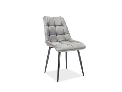 Stílusos fekete fém lábakkal készült bársonyos anyaggal kárpitozott szürke étkezőszék