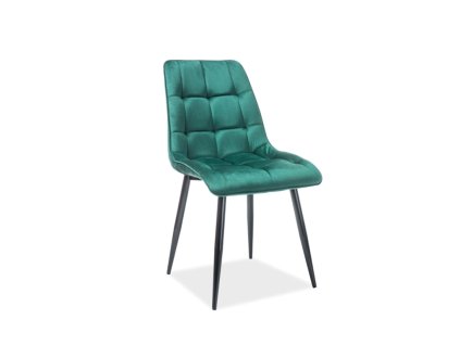 Kecses és gyönyörű étkezőszék zöld színben steppelt háttámlával és vékony fekete fém lábakkal