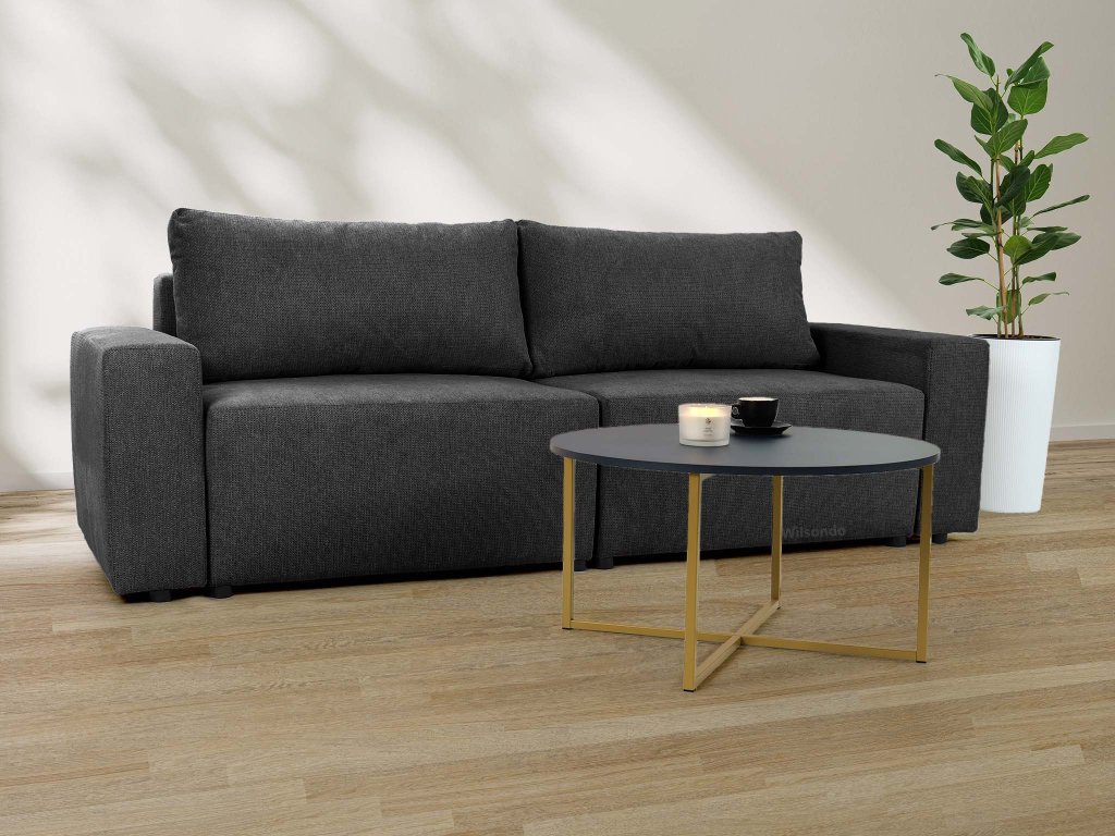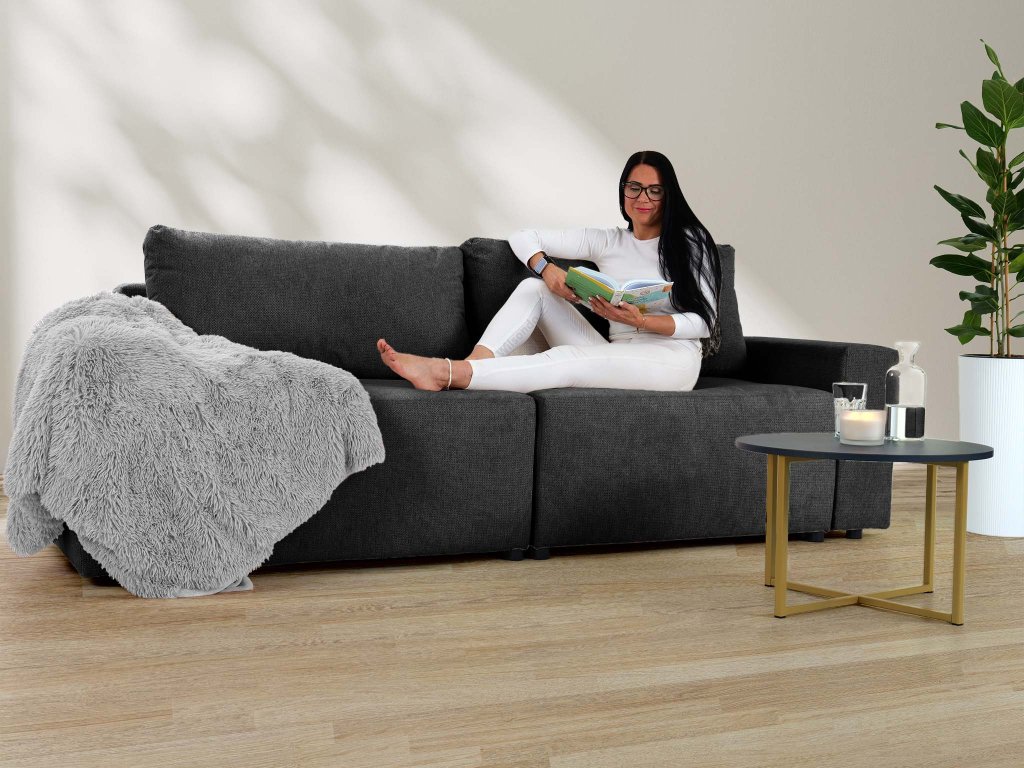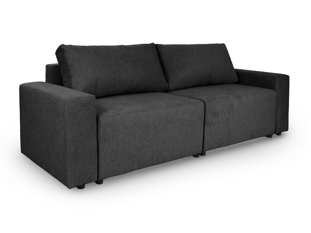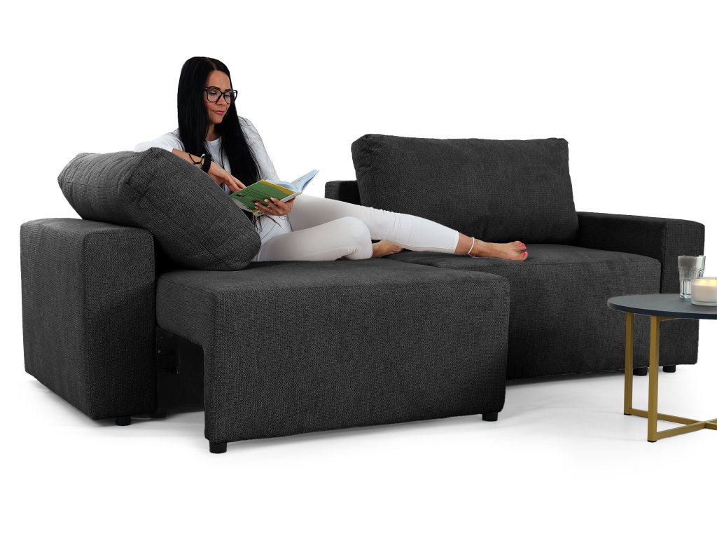 Elegáns fekete szövettel kárpitozott ELLA I ágyazható kanapé, amely egy igazán hosszú kanapéágy. Ez a gyönyörű fekete kanapéágy eleganciát kölcsönöz majd a nappalinak vagy a dolgozószobának. A tágas ágyneműtartónak köszönhetően elhelyezheti benne az ágyneműt. A kanapé szétnyitható, méghozzá kétféle módon is, melynek köszönhetően egy praktikus vendégággyá is alakítható, így egy kisebb városi lakásban is lesz helye az éppen érkező vendégeknek. Egy fedőmatraccal kombinálva pedig teljes lesz a vendégek kényelme. Az ágyazható kanapé Aragon szövettel kárpitozott, amely igazán kellemes tapintású és stílusos. Az Ella kanapé ülőfelületét 10 cm magas Bonell rugók és T30-as hab alkotja, amely kényelmes és stabil ülést biztosít hosszú éveken keresztül. A kanapé két nagy párnával is rendelkezik, amelyek háttámlaként funkcionálnak. A kanapé négy személy számára biztosít kényelmes ülőhelyet.
