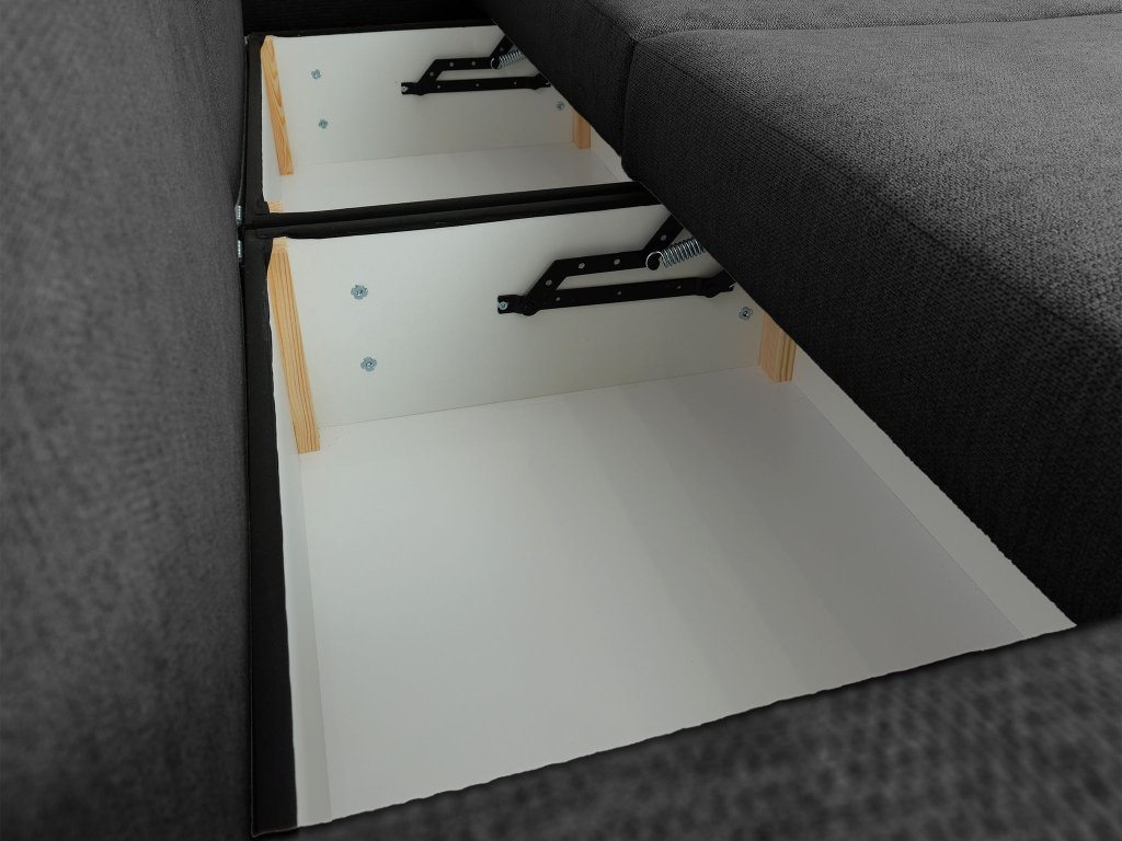 A kanapé szétnyitásával az egyik oldalon a kanapé egy L alakú sarokkanapévá is átalakítható.