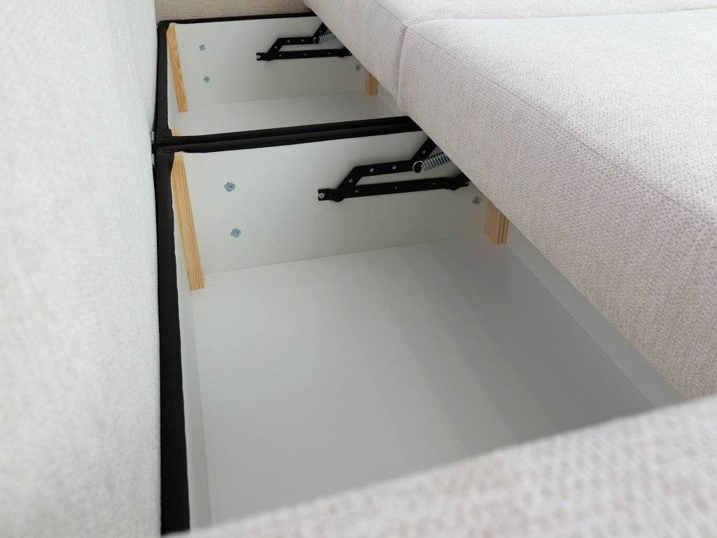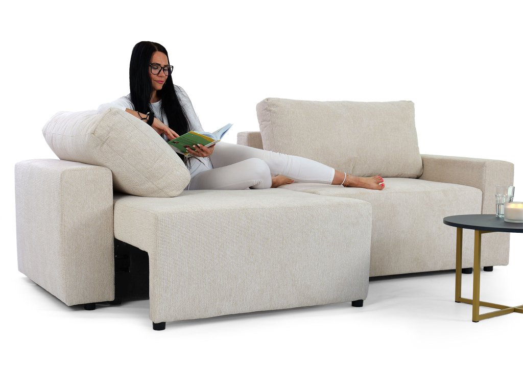 A kanapé szétnyitásával az egyik oldalon a kanapé egy L alakú sarokkanapévá is átalakítható.
