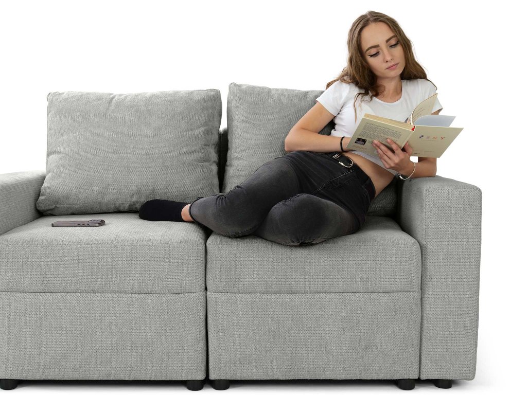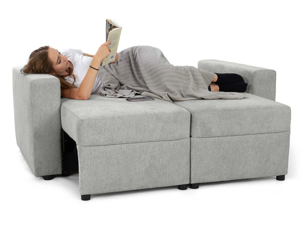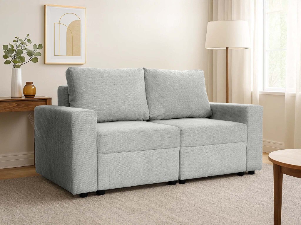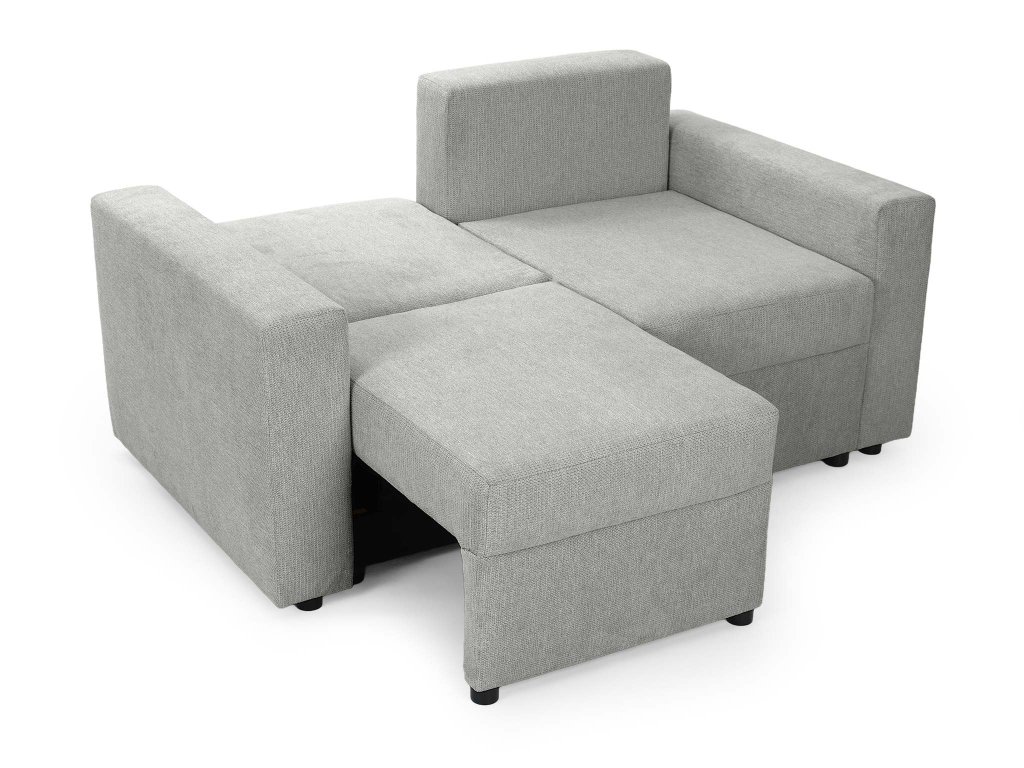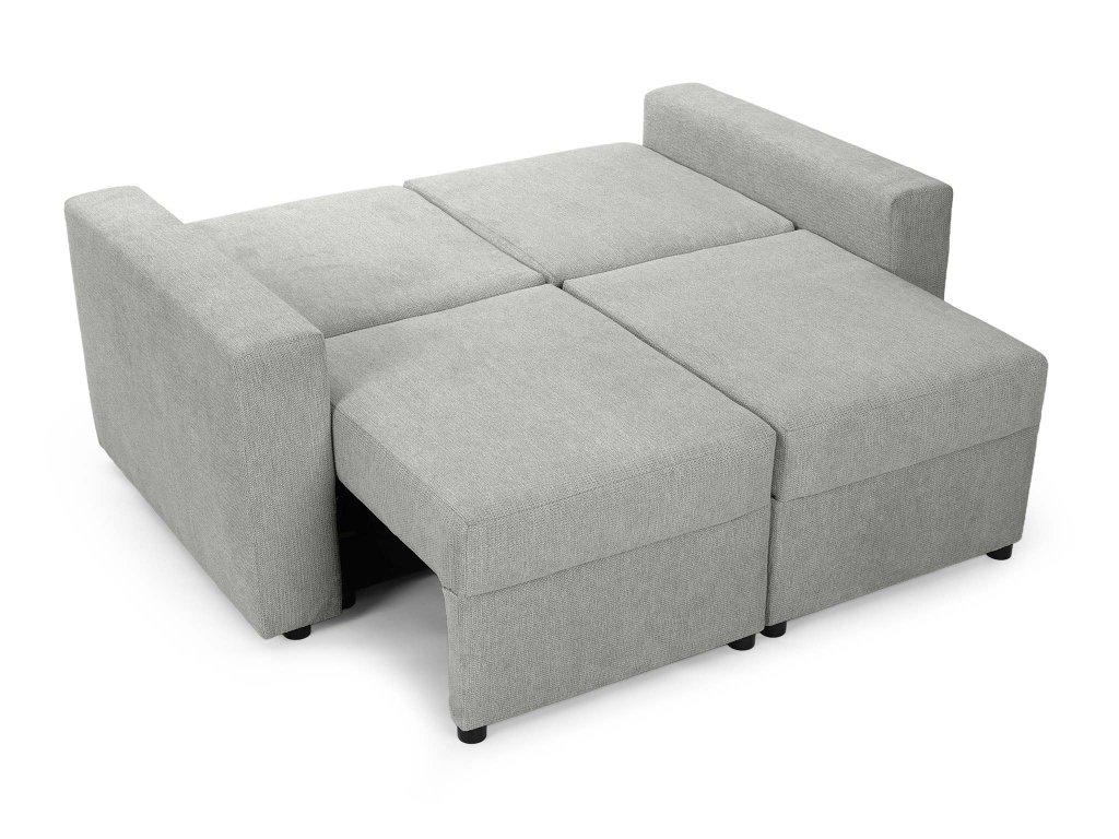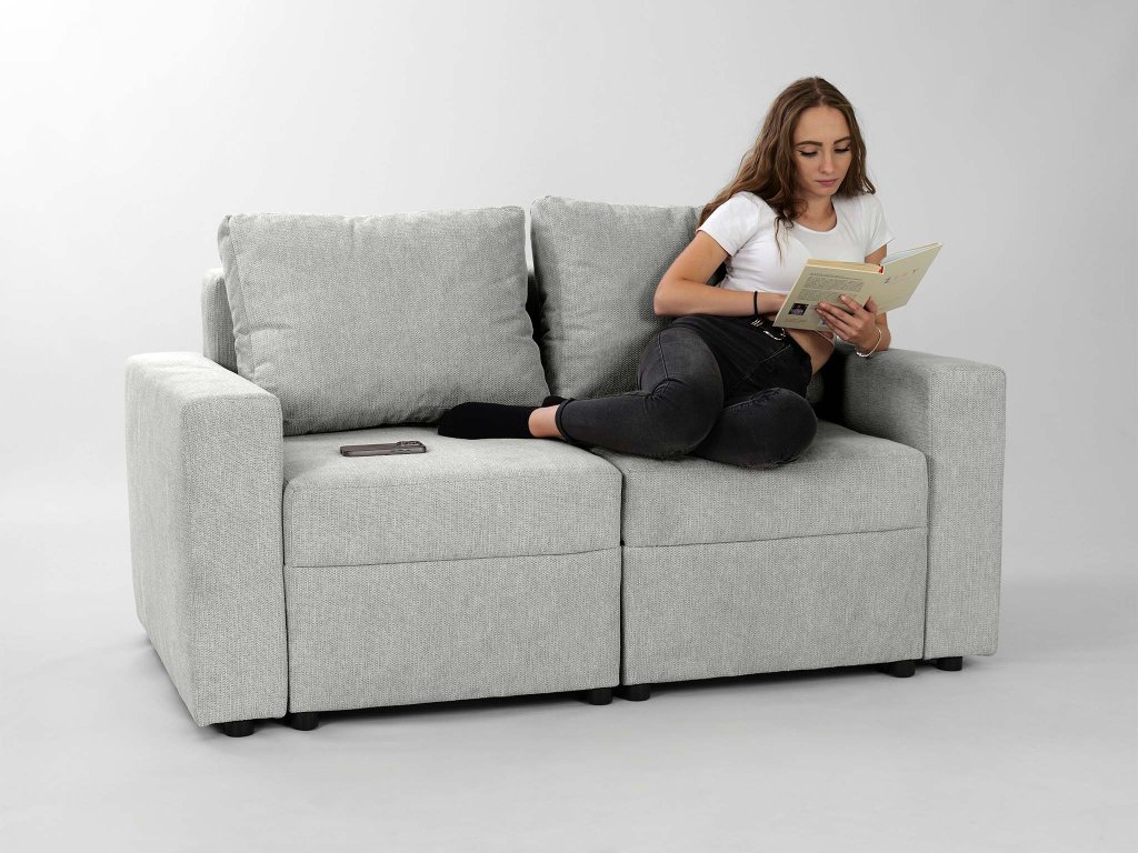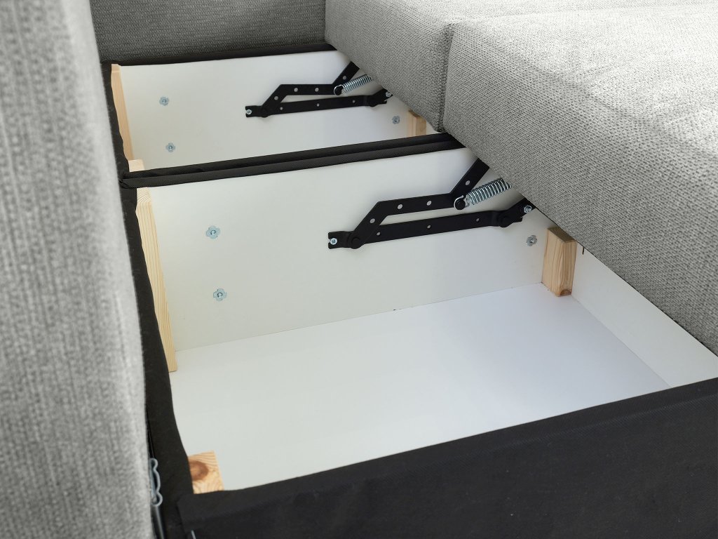 A kanapé nagy előnye, hogy mindkét fele külön-külön is kihúzható, amely lehetővé teszi a rugalmas kihasználását. A kompakt mérete ellenére is kényelmes ülést biztosít két ember számára és ideiglenes fekhelyként is szolgálhat vendégek számára. A kanapéágy tágas ágyneműtartóval és fekete lábakkal is rendelkezik, amelyeknek hála még több praktikus funkciót kap.