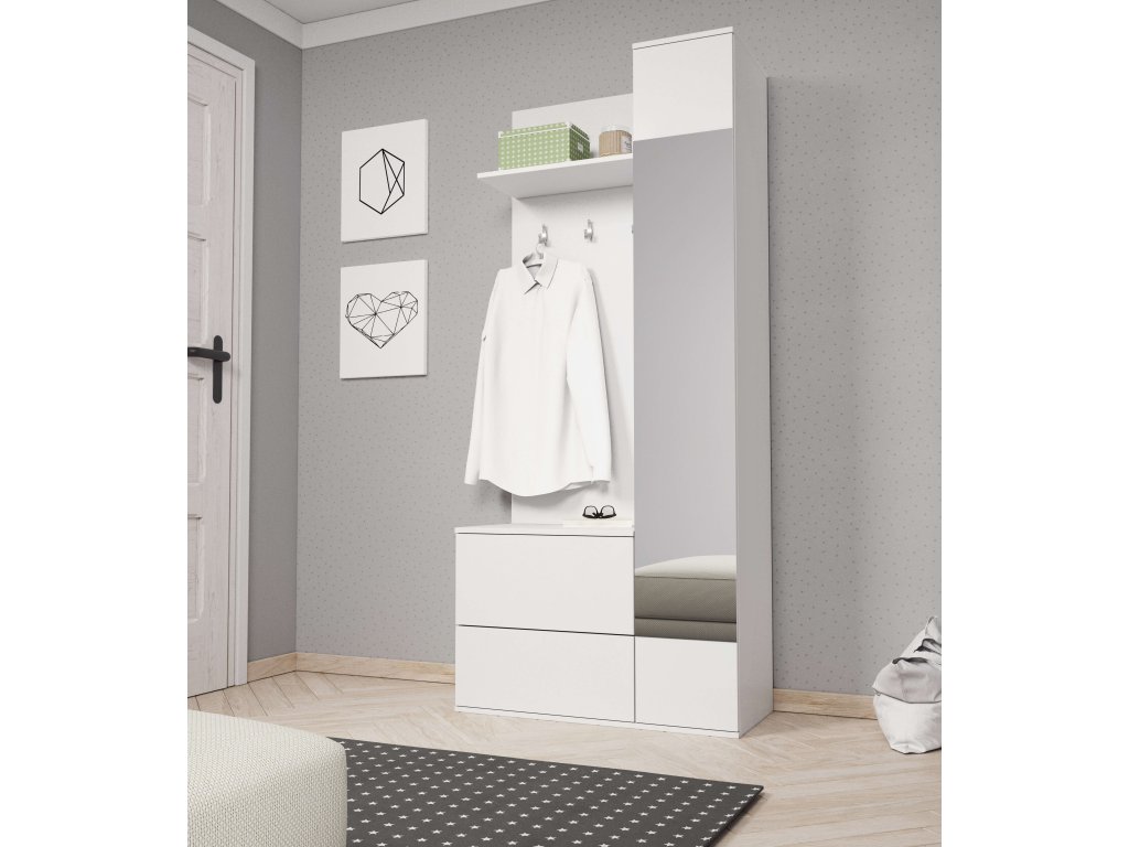 A Hela előszobafal minőségi laminált 16 mm vastag bútorlapból készül. Az élek 0,5 mm-es ABS éllel vannak lezárva, amely ellenáll a mindennapi használattal szemben. A szekrények push-to-open rendszerrel nyílnak. A rendkívül praktikus előszobafal tükröt, két fogast, polcot és két darab cipő tároló rekeszt tartalmaz. Az előszobafalat a falhoz kell rögzíteni.