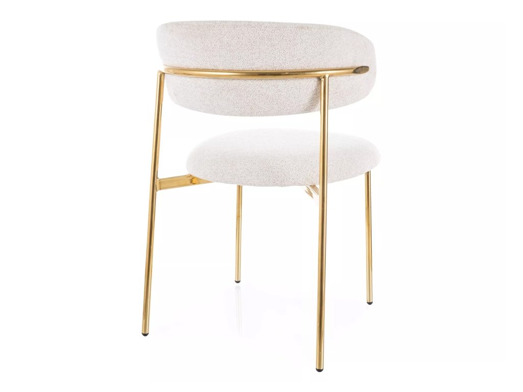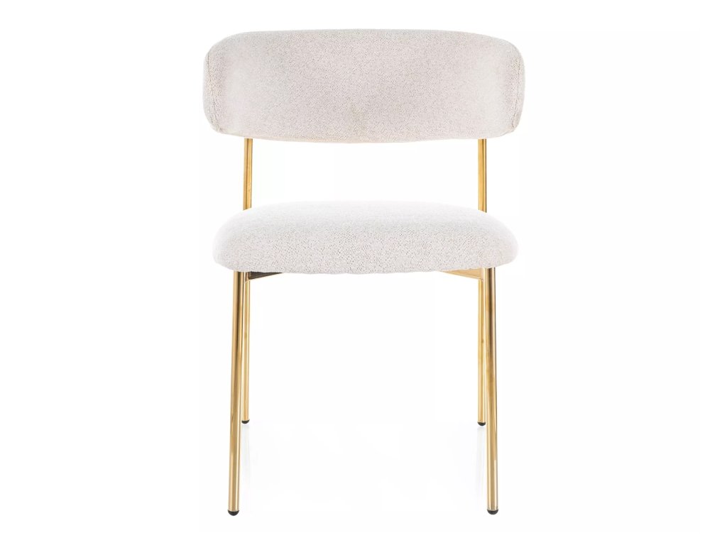 A krémszínű szövettel kárpitozott ELTON Raven étkezőszék ötvözi a modern designt, a praktikumot és az elegáns megjelenést. Igazán jó választást jelent az étkezőbe, a dolgozószobába, de a hálószobába is a fésülködő asztal mellé. Finoman texturált felülete időtálló hatást kelt. Minőségi RAVEN szövettel kárpitozott, amely lágy bársonyos felszínnel rendelkezik. Ez az anyag ellenálló a kikopással szemben és nagyon kellemes tapintású. Az étkezőszék masszív arany színű fém vázzal rendelkezik, amely stabilitást és hosszú élettartamot biztosít. Az Elton szék letisztult formájának köszönhetően jól illik a modern és a klasszikus belső terekbe egyaránt. Magas üléskomfortja miatt kiválóan alkalmas mindennapos használatra és hosszabb étkezésekhez, beszélgetésekhez is az étkezőasztal mellett.
