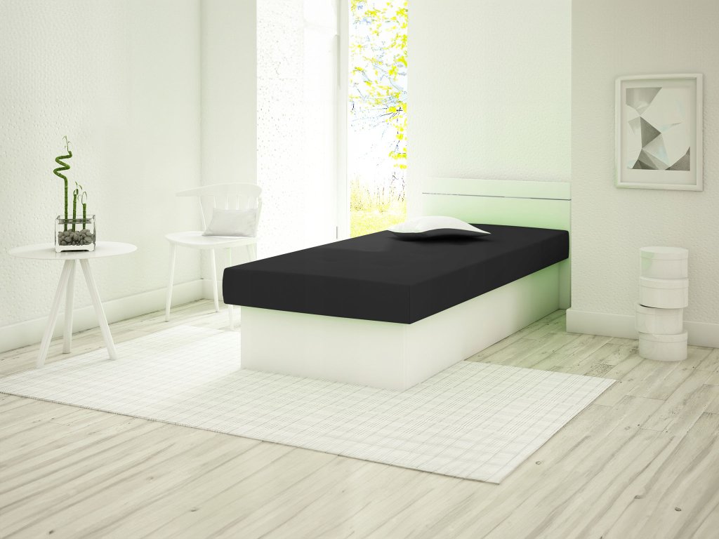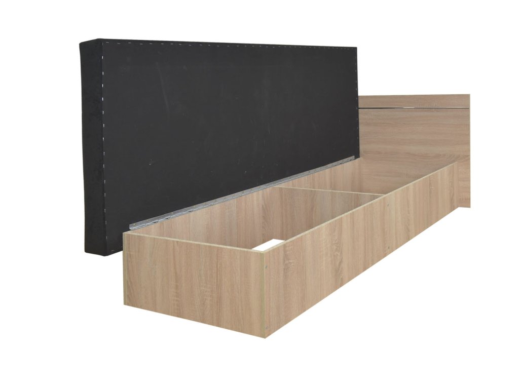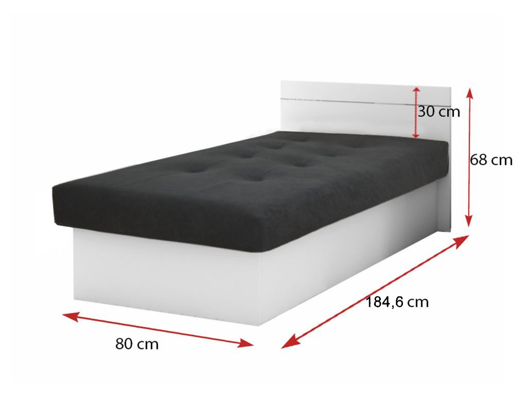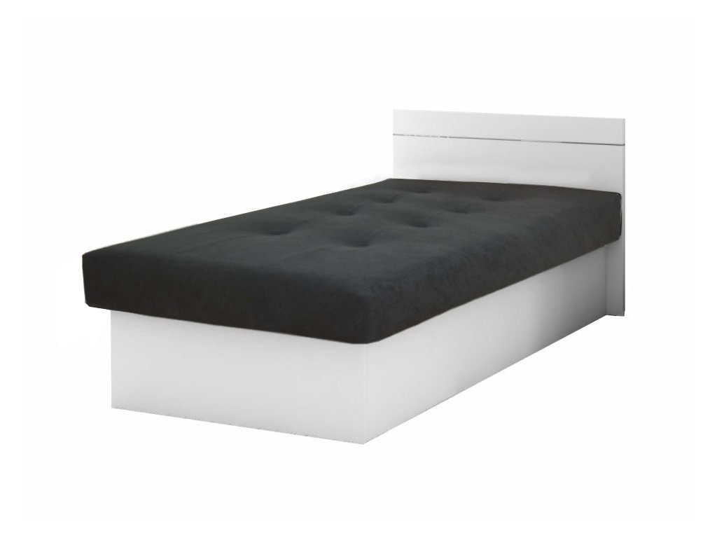 EMILY PLUSZ 190x80 cm egyszemélyes magasított fejtámlával rendelkező ágyneműtartós ágy fekete fehér színben, amely tökéletes választás az ifjúsági szobákba kamaszoknak vagy esetleg panziókba, hotelekbe, kollégiumokba. Az ágy nagy előnye, hogy matraccal és tágas tárolóval is rendelkezik. A tárolót az ágy hosszanti oldalának felnyitásával lehet elérni. Ennek az ágynak és az ágyneműtartójának köszönhetően a plédeknek és az ágyneműnek mindig lesz helye. Az ágy laminált DTD bútorlapból készült kombinálva fekete Seduine kárpitozó szövettel. A kényelmes pihenést a magas minőségű poliuretán hab garantálja bonell rúgókkal. Az ágy megfelelő választás azoknak, akik értékelik az egyszerűséget, az alacsony árat és a jó minőséget. Az ágy magasított fejtámlával rendelkezik. Az ágyneműtartó felnyitása lehet jobbos vagy balos, ezt az összeszerelés előtt el tudja dönteni.