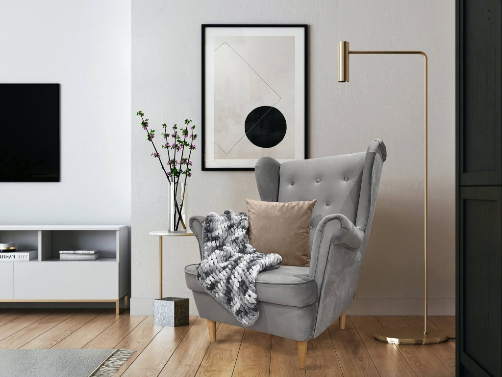 Gyönyörű bézs fotel kellemes bársonyos szövettel kárpitozva