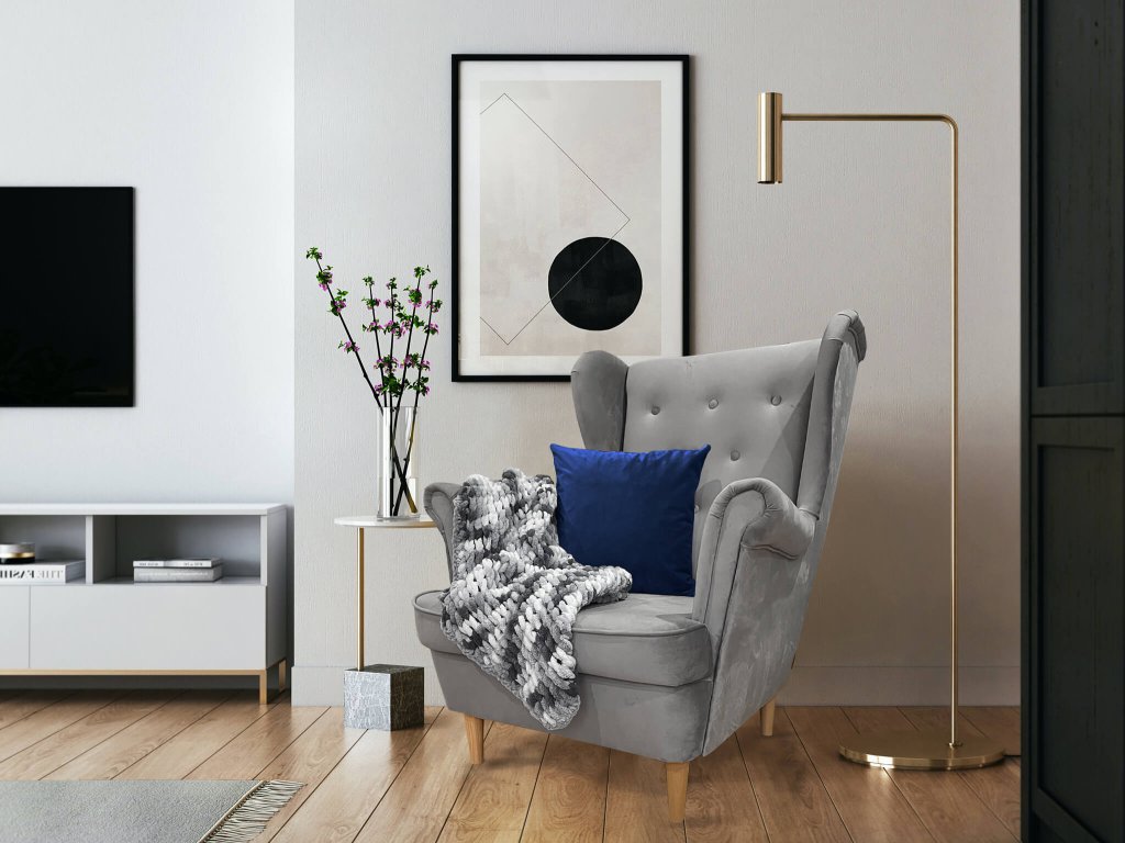 Stílusos szürke füles fotel a nappalijába, amely tökéletes választás a DEANA kollekció többi darabjához