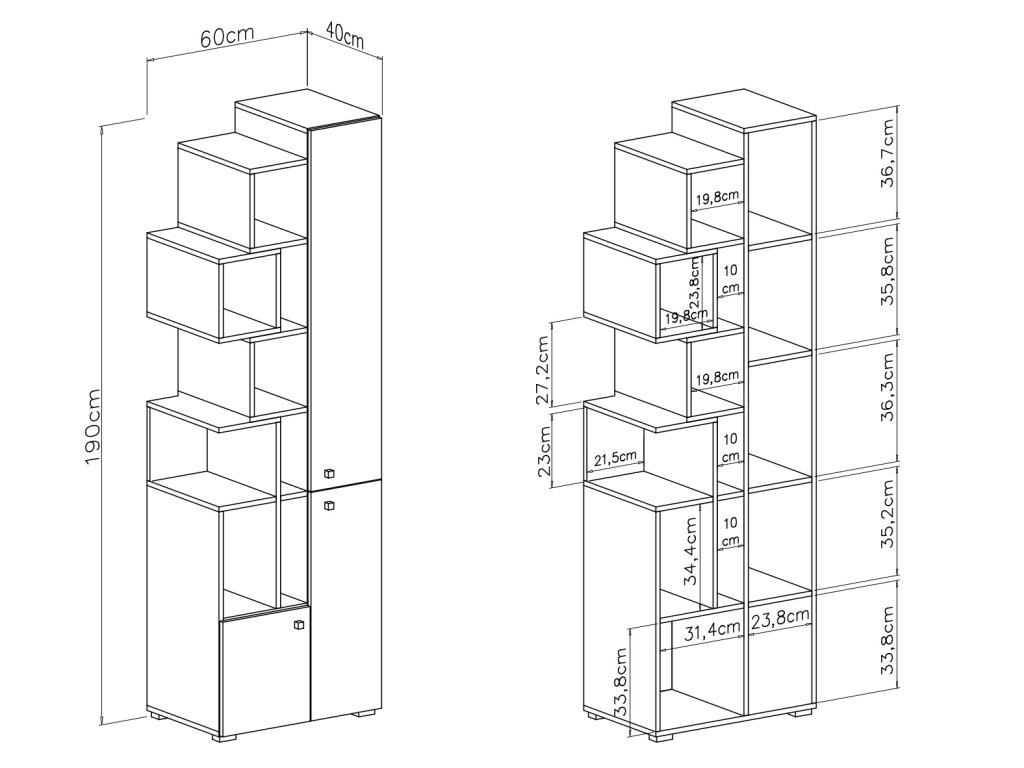 - Méret (SzéxMéxMa): 60 x 40 x 190 cm