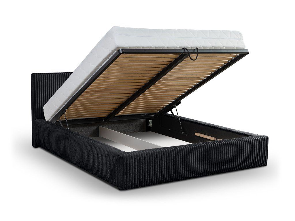 FARESE kárpitozott ágyneműtartós franciaágy 180x200 - fekete
