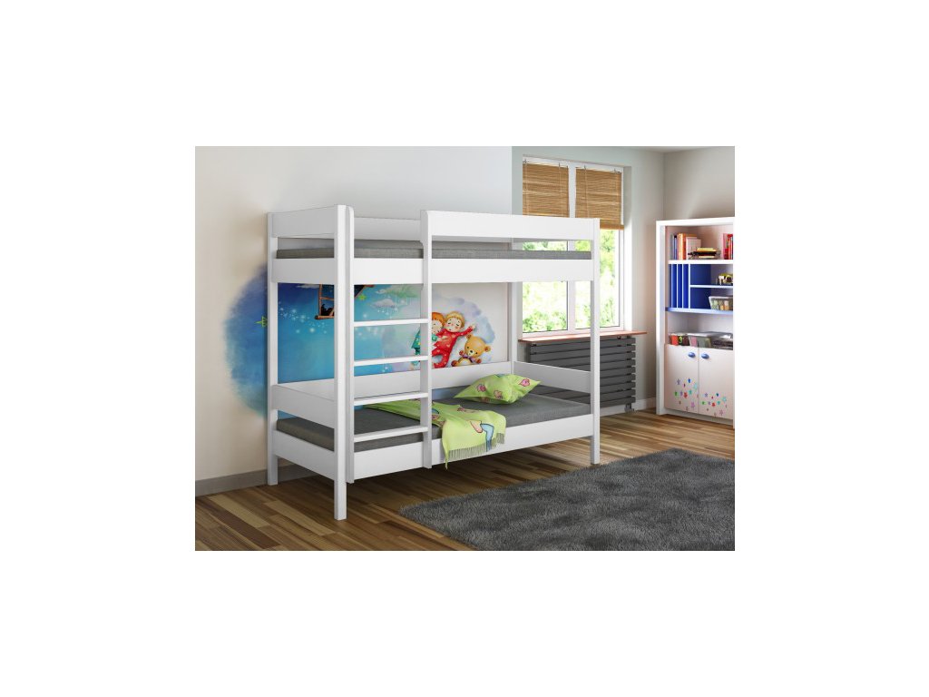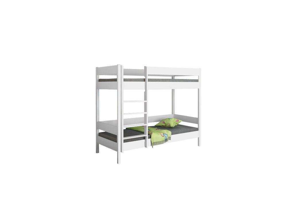 A kiváló minőségű, szilárd szerkezetű DIEGO PRED emeletes ágy minőségű tömör fenyőből készül, semleges fehér színben. A Diego PRED emeletes ágyak teherbírása 150 kg. A létra univerzális, tehát kétoldalasan felszerelhető. Az ágy létrát és ágyrácsokat tartalmaz.