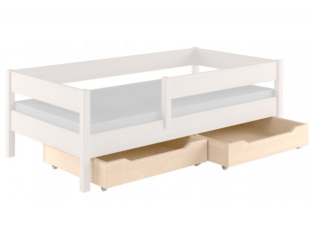 Annak érdekében, hogy több tárhelyet biztosítson gyermekeinek, vásárolja meg a Mix/Diego Pred gyerekágyhoz gyártott fehérített tölgy színkivitelben készült praktikus tároló fiókokat. A kerekek gumibevonattal rendelkeznek így megvédik padlóját a karcolásoktól. Az ágyneműtartó előlapjait borovi fából készülnek, az oldalait bútor deszkából. A fiókok alsó része HDF - ből készült. A tároló fiókok elegendő tárhelyet biztosítanak.