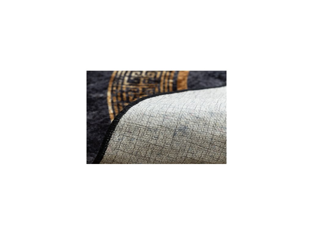 Dobja fel belső terét elegáns kék-arany kerek Miro szőnyegünkkel. Ez a szőnyeg kiváló minőségű poliészterből készült, amely hosszú élettartamot és könnyű karbantartást biztosít. Kék színe márvány mintával és görög motívummal luxus és modern megjelenést kölcsönöz a helyiségnek. A csúszásgátló felületkezelésnek köszönhetően ideális minden háztartásba, ahol a biztonság az első. Ez a szőnyeg remek választás azok számára, akik stílusos és funkcionális kiegészítőt keresnek otthonukba.