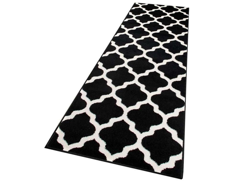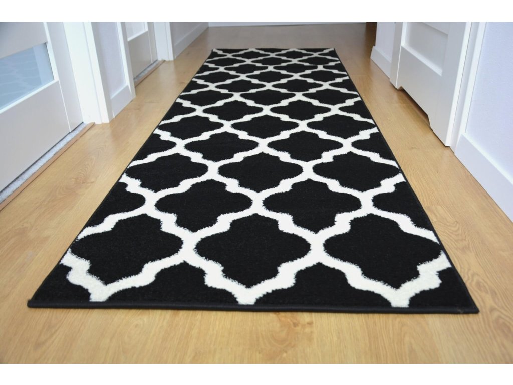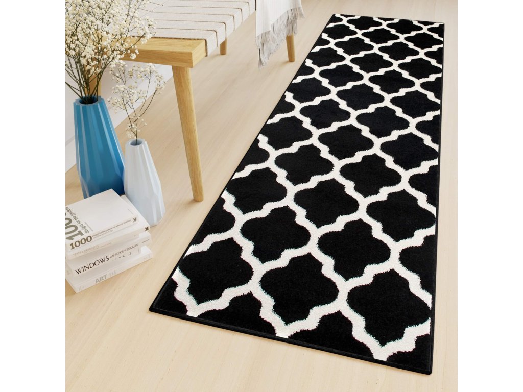 Stílusos geometrikus mintával ellátott fekete-fehér futószőnyeg