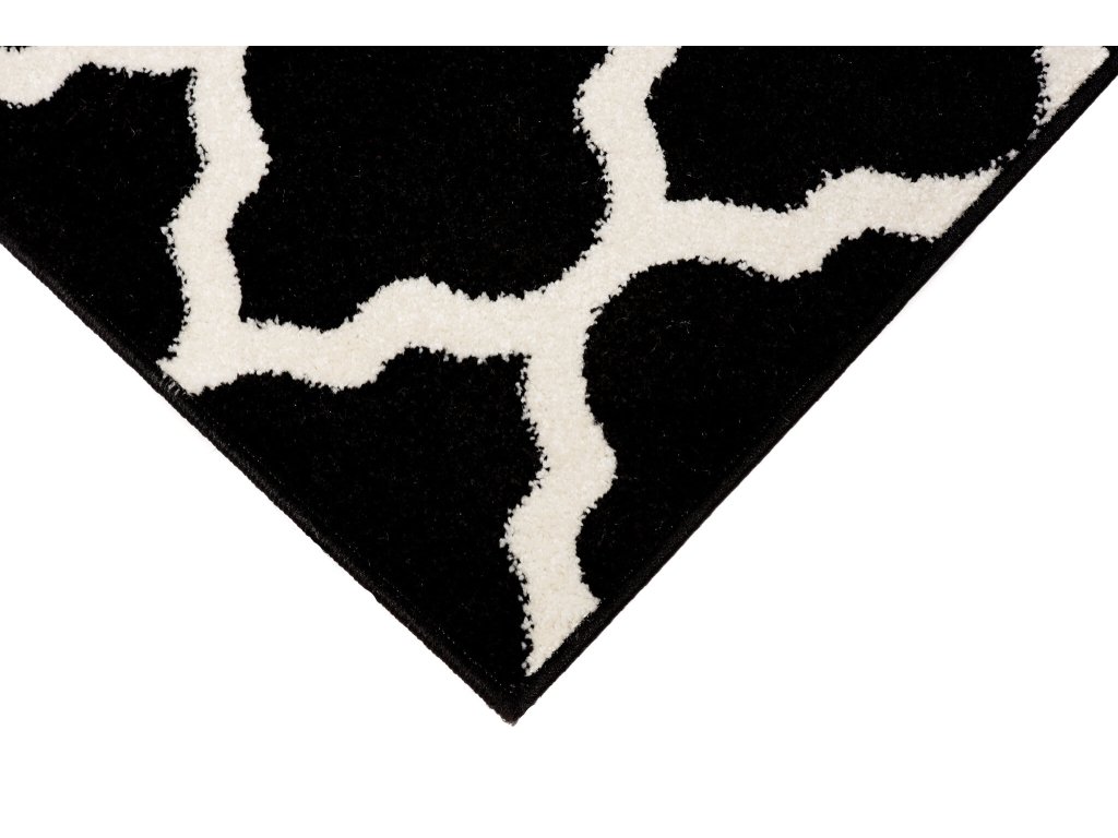 Fekete-fehér mintás gyönyörű Marine futószőnyeg, amely 2200 g/m2 polipropilén Frise típusú szálakból készült 10 milliméteres szálmagassággal. A polipropilén szálak igazán puhák és rugalmasak. A szőnyeg nem deformálódik, ellenálló a kikopással szemben és könnyen tisztítható. Modern geometrikus designnal rendelkezik. Tökéletes konyhai, előszoba vagy folyosó futószőnyeg lehet az otthonában. Jó választás a modern, de a klasszikus otthonokba is.