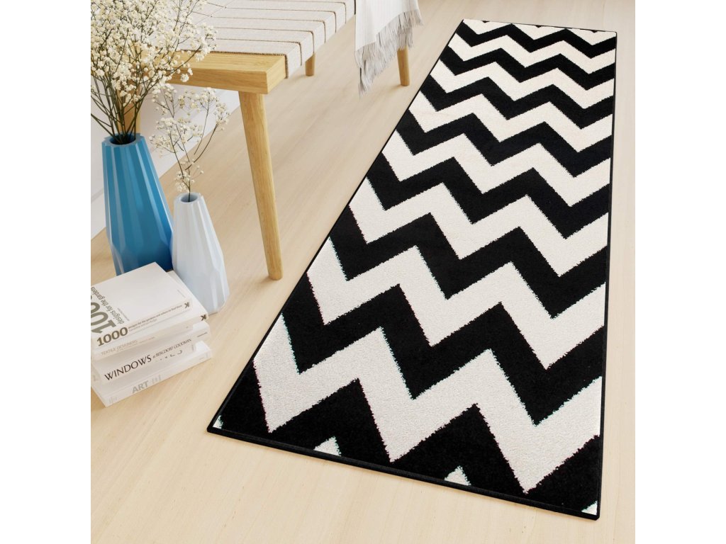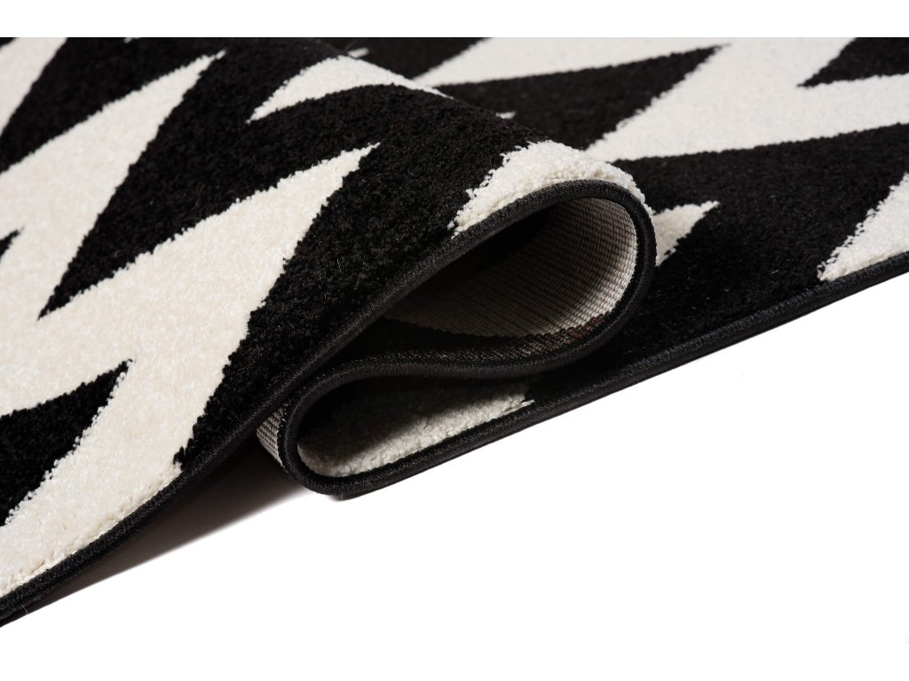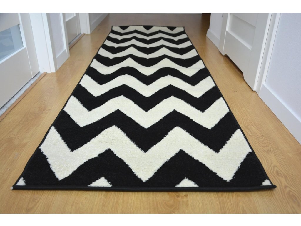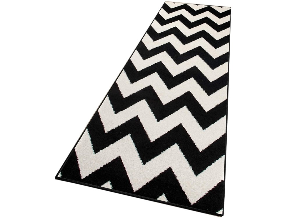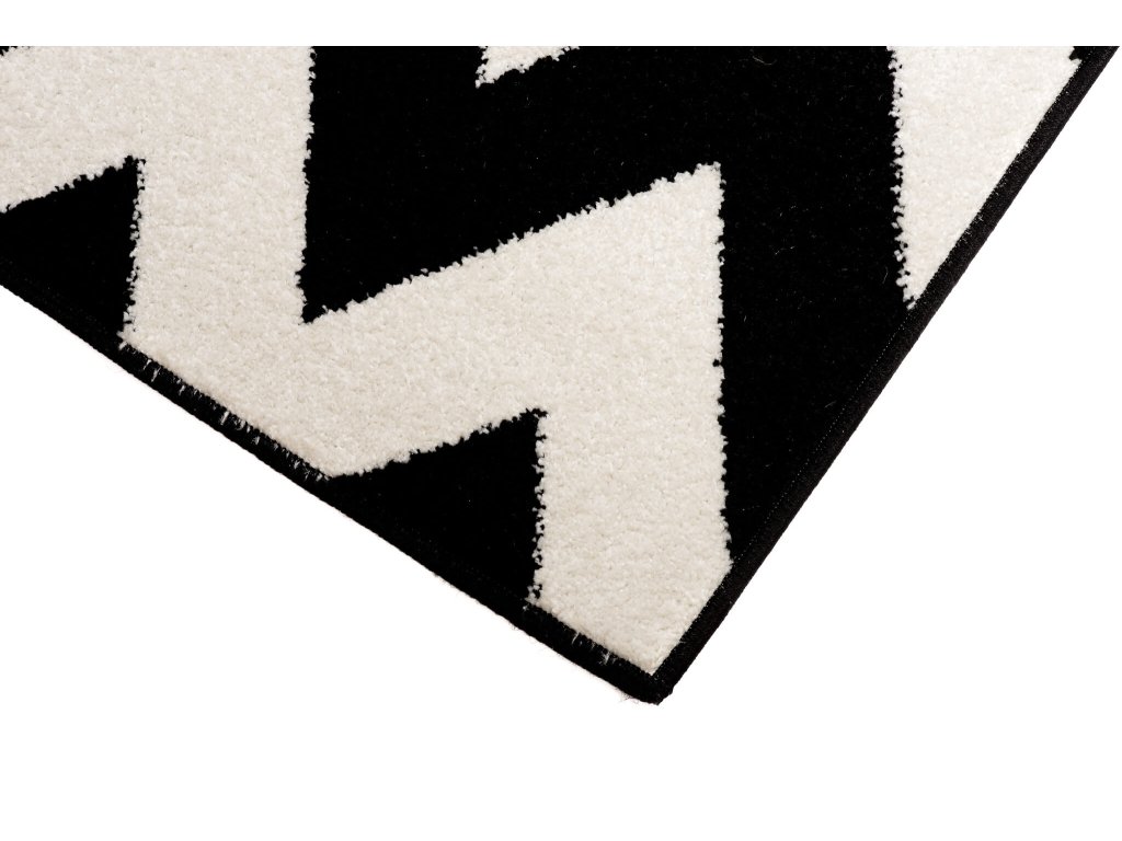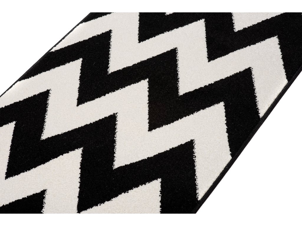 Igazán eredeti és modern mintás fekete-fehér futószőnyeg, amely feldob miden otthont, legyen szó modern vagy klasszikus szobáról is. A szőnyeg 2200 g/m2 polipropilén Frisé típusú szálakból készült 10 milliméteres szálmagassággal. A polipropilén szálak igazán puhák és rugalmasak. A szőnyeg nem deformálódik, ellenálló a kikopással szemben és könnyen tisztítható. Modern geometrikus designnal rendelkezik. Tökéletes konyhai, előszoba vagy folyosó futószőnyeg lehet az otthonában.