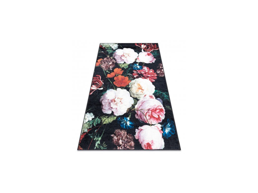 ANDRÉ fekete-rózsaszín virágos szőnyeg