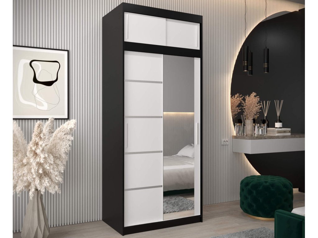 Felépítmény / felső kiegészítő szekrény 100/120 fekete és fehér szín kombinációjában, amely a többek között az ALYXIA szekrényekhez megfelelő. A szekrényekhez hasonlóan magas minőségű laminált 16 mm vastag bútorlapból készülnek a fogantyúk pedig PVC-ből. A BIMAK tolóajtó rendszer biztosítja az ajtók megfelelő működését, amelyek fém vezetősíneken mozognak.