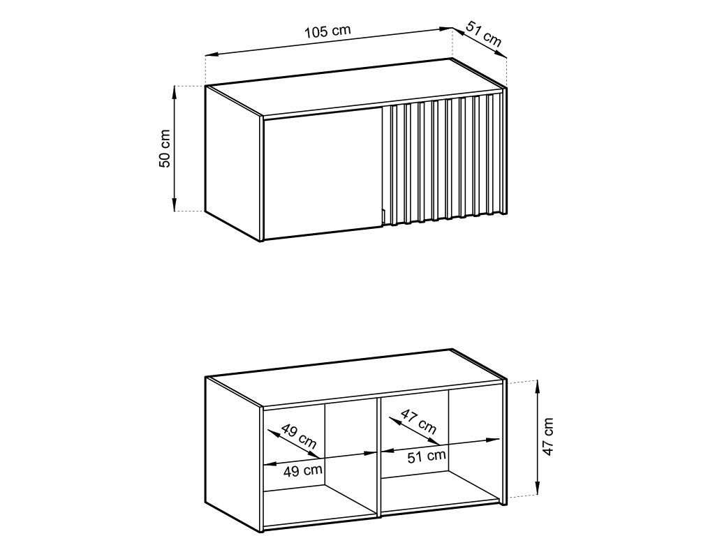 Több helyre van szüksége? Akkor amire szüksége van ez a felső kiegészítő szekrény / felépítmény a NELLY 2D ruhásszekrényre, amely sötétszürke színben készül. A felsőrész felépítmény minőségi laminált 16 mm vastag bútorlapból készül dísz lamellákkal díszítve. A fogantyú fekete színben kapható és műanyagból készül.