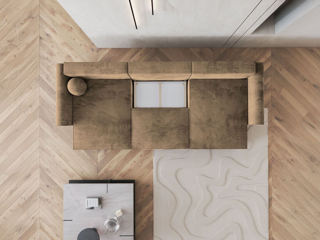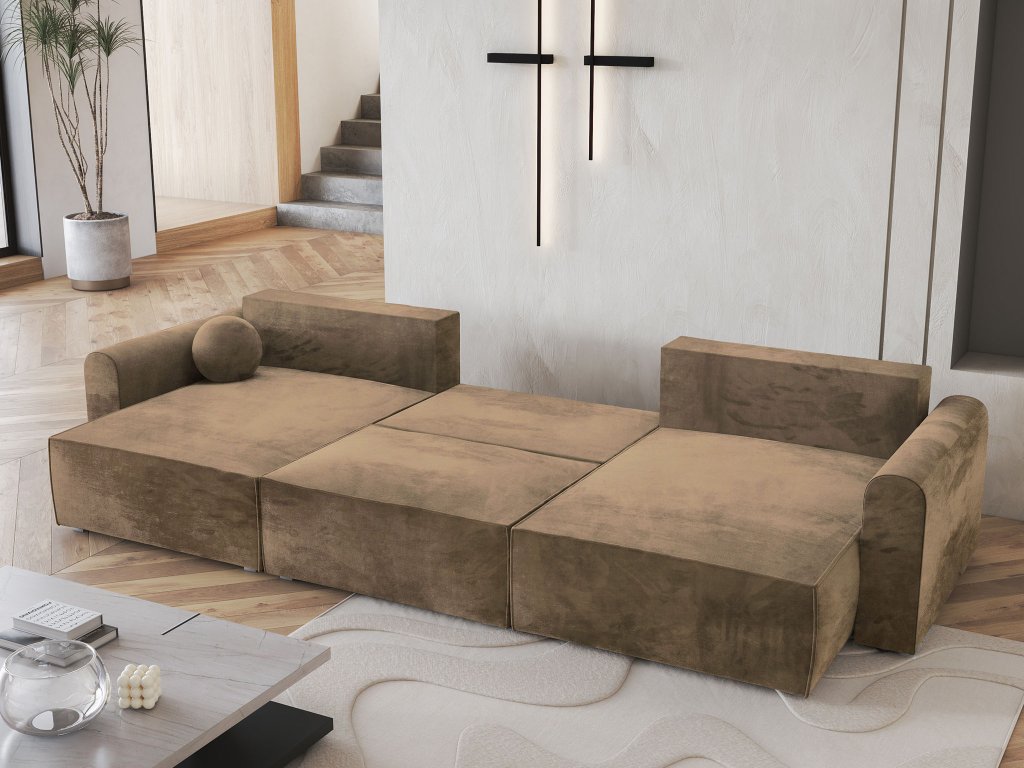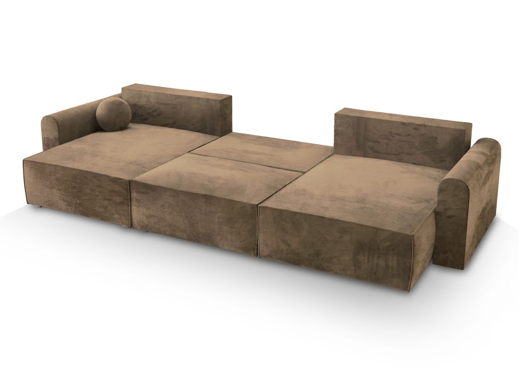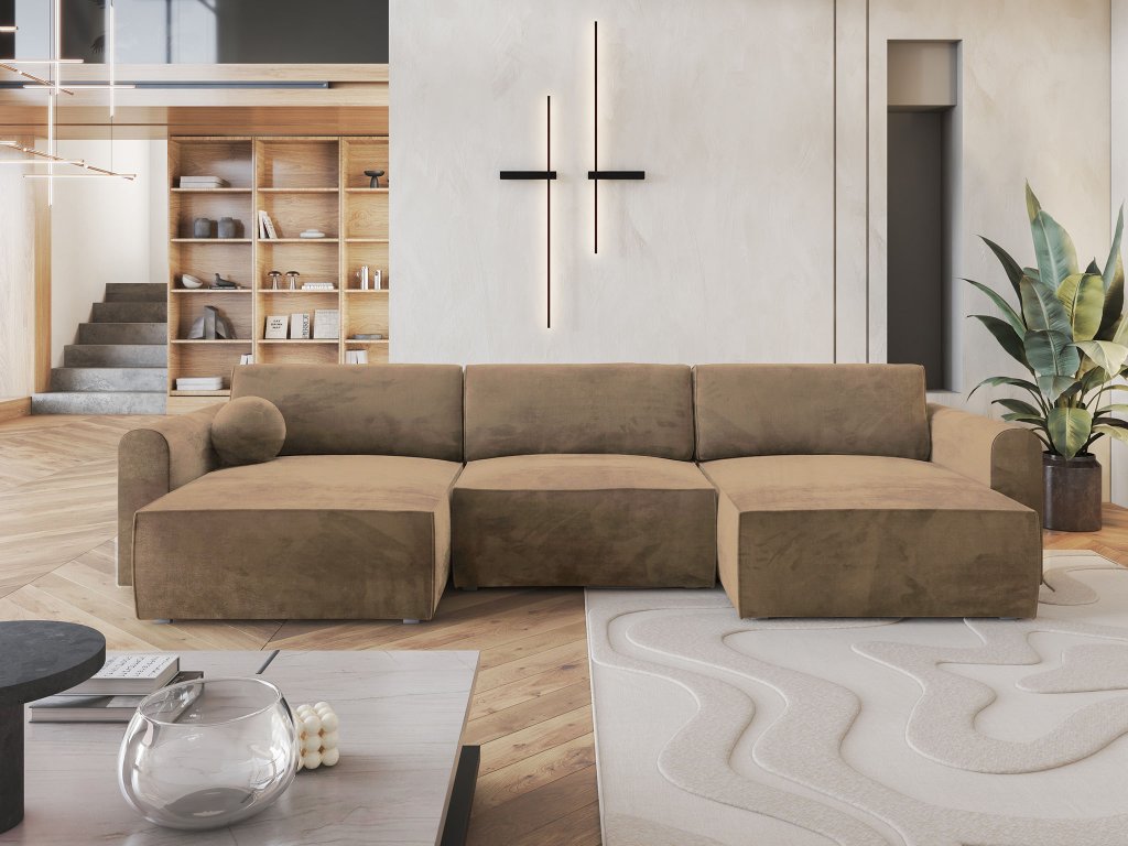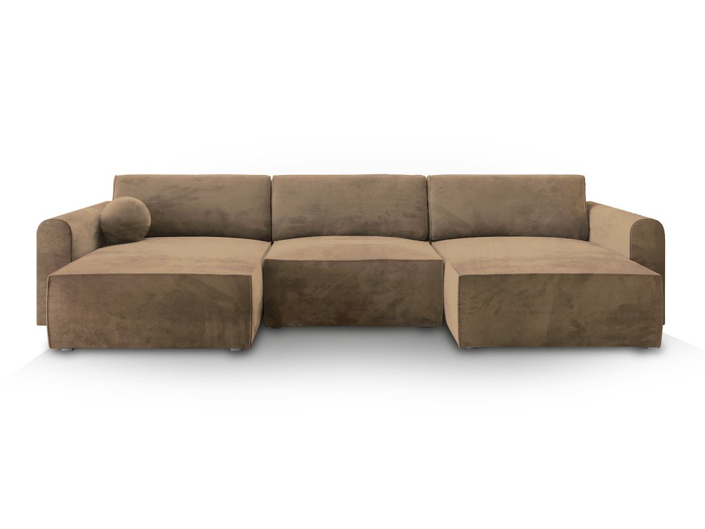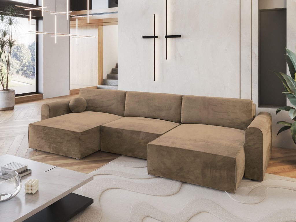 A luxusos és bársonyos bézs Monolith szövettel kárpitozott FENTO M kihúzható U alakú ülőgarnitúra maximális kényelemet garantál.