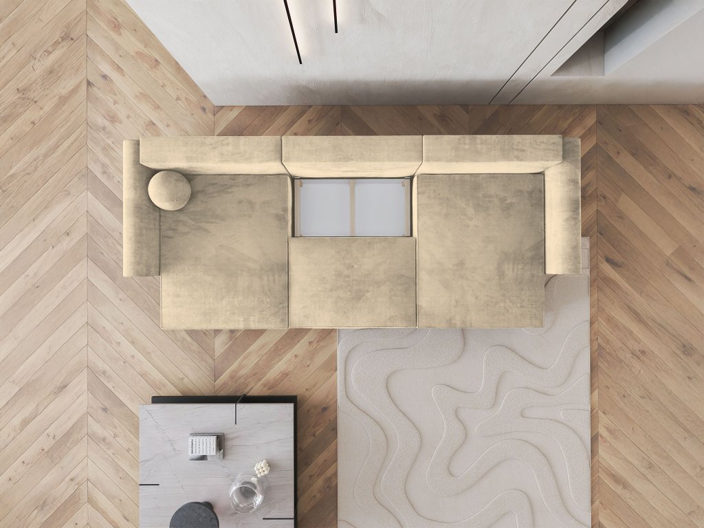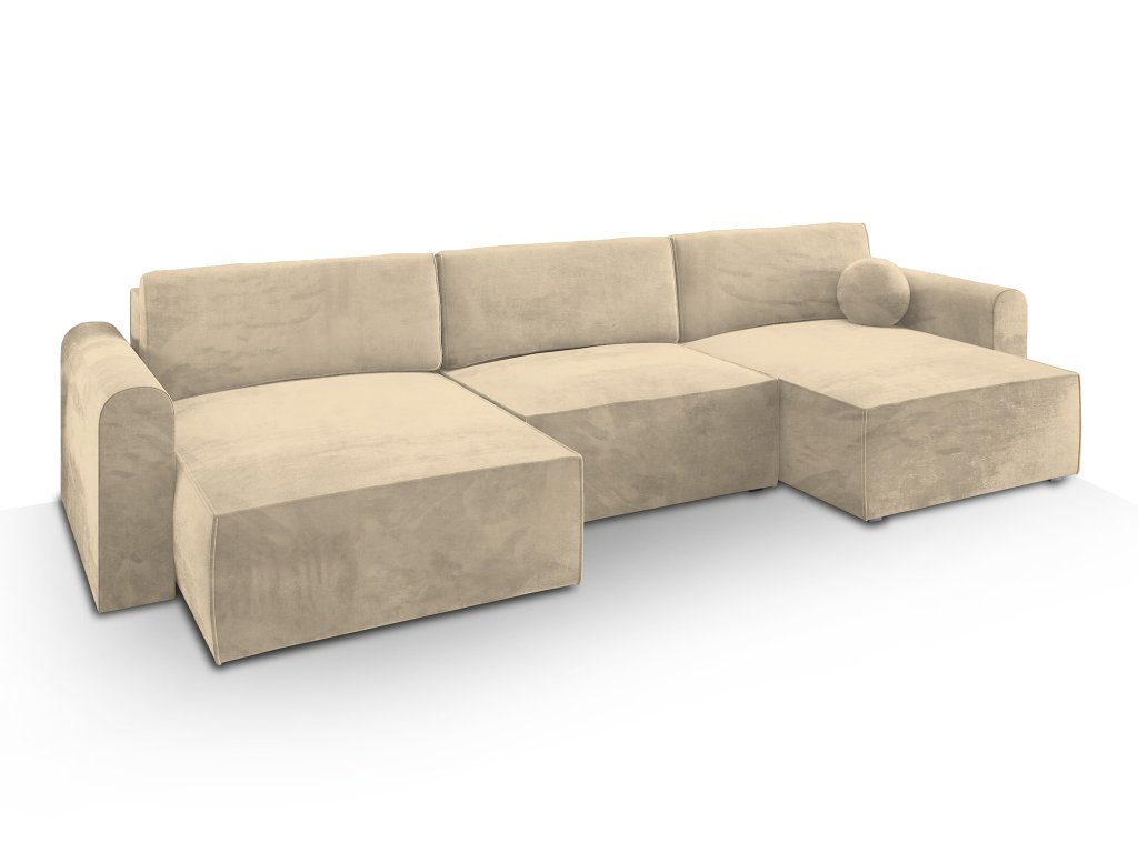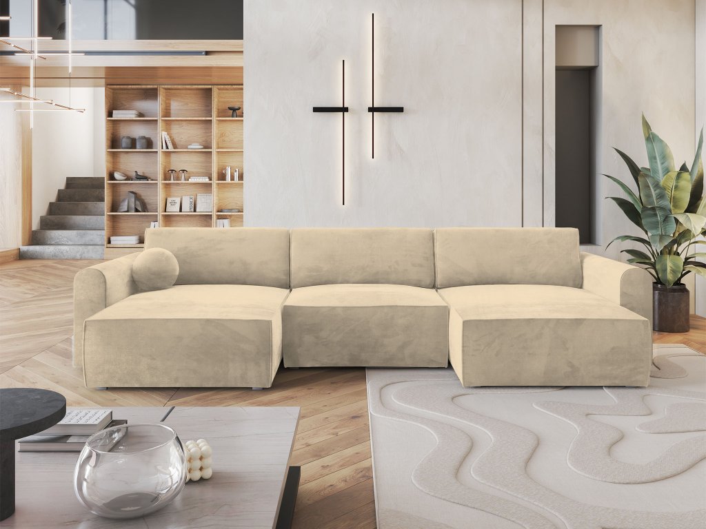 A FENTO M minőségi U alakú ülőgarnitúra krémszínű Monolith szövettel kárpitozott, amely igazán elegáns, karakteres és luxusos bársonyos kinézetet kölcsönöz a bútornak.