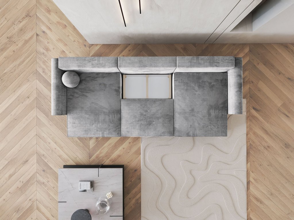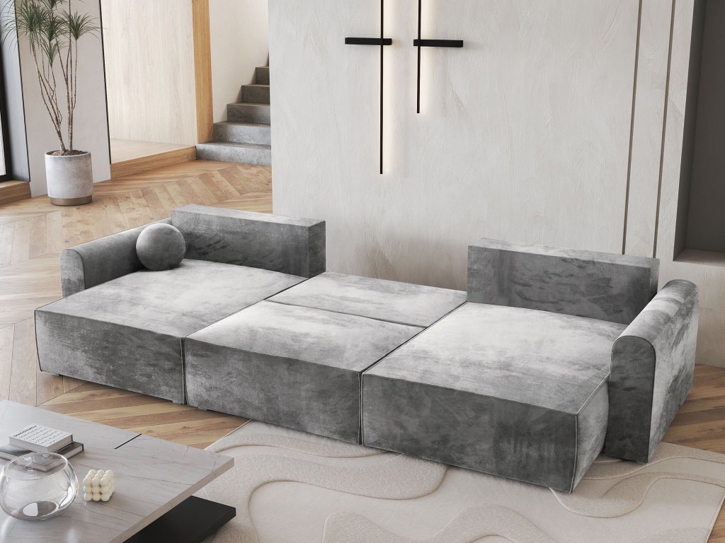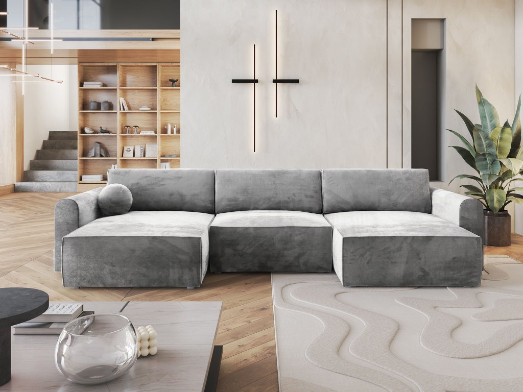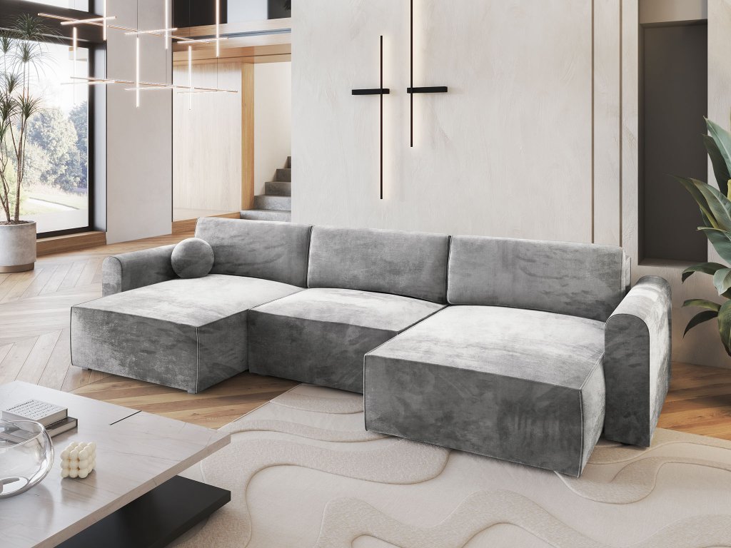 A FENTO M szürke U alakú ülőgarnitúra egy igazán elegáns, karakteres bútordarab, amely luxusos bársonyos szövettel kárpitozott.