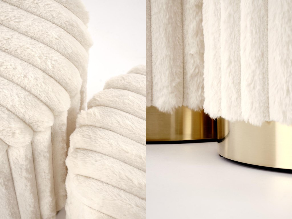Frissítse fel belső tereit egy dizájnos és egyben kényelmes bútor kiegészítővel. A Fido puffok a modern stílust és a praktikus megoldásokat kombinálják. Ez a szett két különböző méretű puffot tartalmaz, így az aktuális igényeknek megfelelően választhat. A kerek vonalak és a meleg krémszínű árnyalatú kárpitozás garantálja, hogy a puffok különböző stílusú berendezésekhez illeszkednek. Az alsó rész arany krómozott részlettel van díszítve, ami finom luxus hangulatot ad az egésznek.