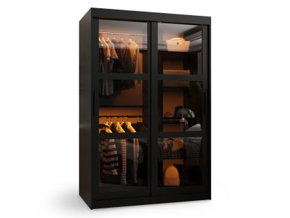 Kivételes széles ruhásszekrény tolóajtókkal Dome elegáns fekete dizájnban