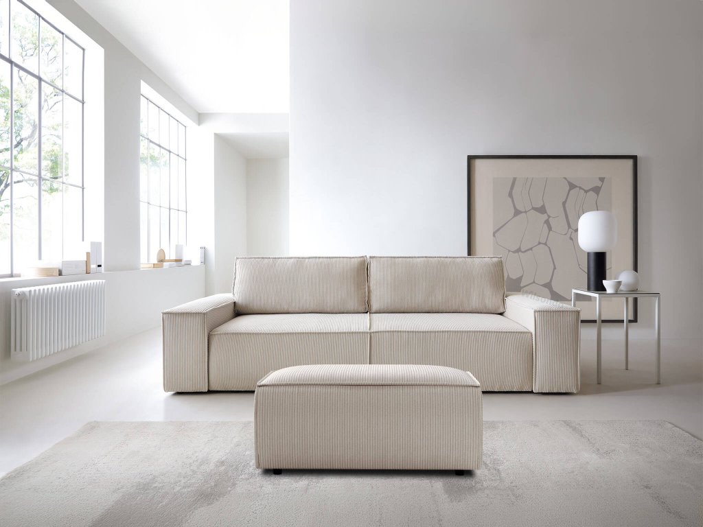 FIORD nagy bézs puff, amely tökéletes kiegészítő minden nappaliba vagy hálószobába. Puffként is elhelyezheti a franciaágy végébe vagy lábtartóként a kanapé vagy a fotel mellé. Egyedi designnal rendelkezik, így a nappalitól kezdve a hálószobán át a gyerekszobába, mindenhol megtalálja a helyét. Ez a stílusos puff magas minőségű anyagokból készül és POSO kordbársony manchester szövettel kárpitozott, amely nagyon puha és a plüssre emlékeztet. A tisztítása is nagyon egyszerű. Eég egy nedves ronggyal időnként áttörölni. Esetleges nagyobb szennyeződés esetén kárpitozott bútorokra megfelelő tisztítószer használatát ajánljuk. A puff műanyag lábakon áll. Azt mindenképp meg kell említenünk, hogy ez a puff tényleg nagyon nagy, és kényelmes ülőhelyet biztosít akár két felnőtt embernek is. Dobja fel hát otthonát ezzel a gyönyörű és modern puffal, amely plusz ülőhelyeket biztosít. Tökéletes kiegészítő lehet a FIORD U alakú vagy a FIORD L alakú sarok ülőgarnitúrához is.