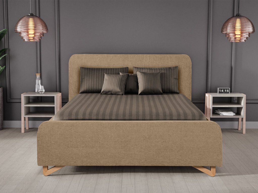 FLAMINGO kárpitozott ágyneműtartós franciaágy 140x200 - világosbarna