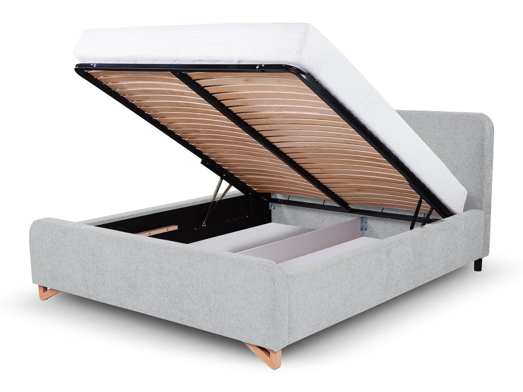 FLAMINGO kárpitozott ágyneműtartós franciaágy 140x200 - világosszürke