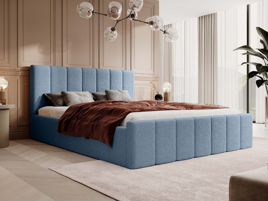 FLAVIO Slim kárpitozott ágyneműtartós franciaágy 140x200 - kék
