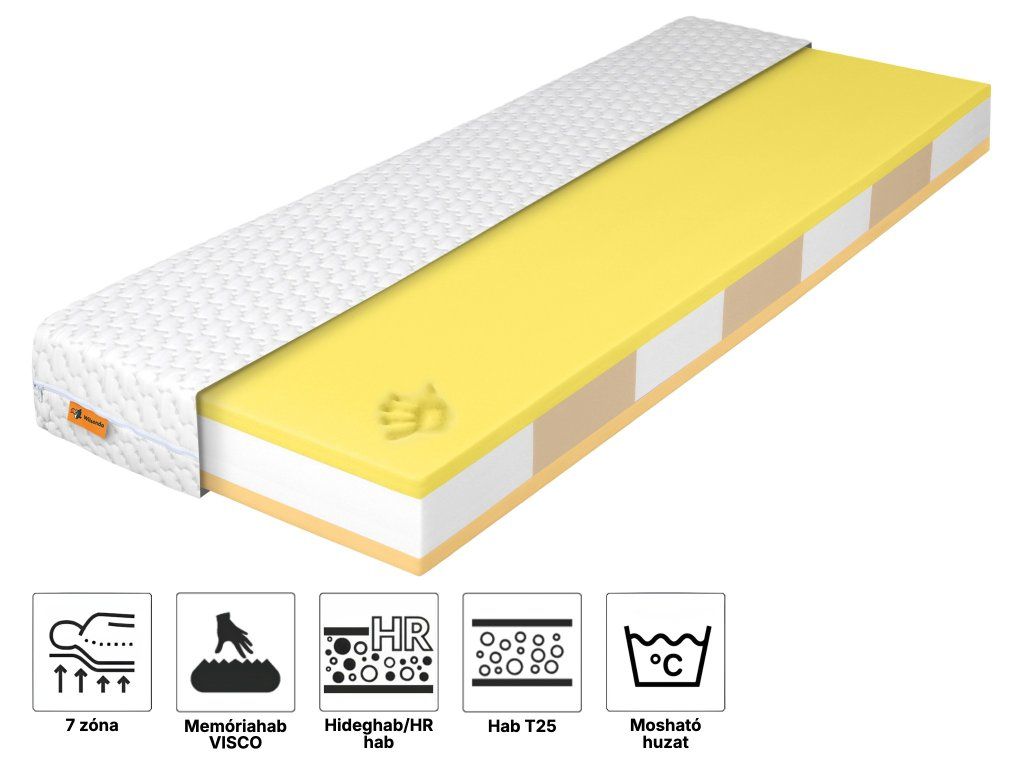 Anyagösszetétel: PUR hab, hideg HR hab, Visco emlékezőhab, Melody huzat
