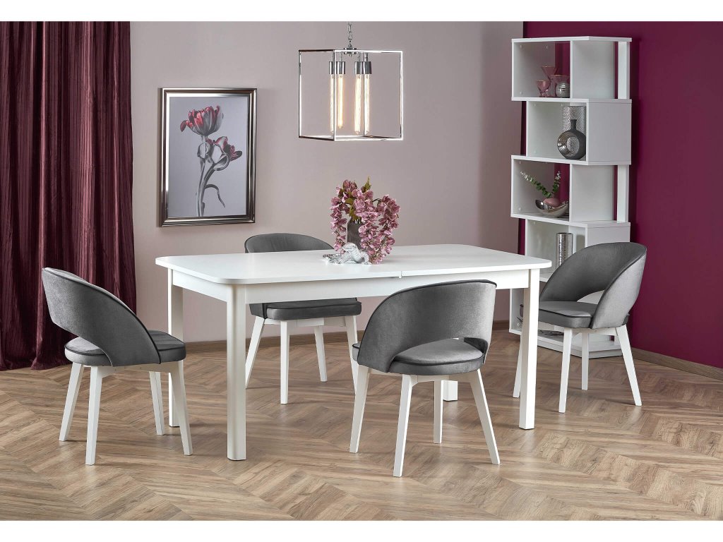 Az étkezőasztal az a hely, amely minden családi étkezés középpontja. A fehér FLORIAN bővíthető étkezőasztal egy modern kiegészítő minden étkezőbe, konyhába vagy akár a dolgozószobába is. Az asztal széthúzható, így akár 6-8 személynek is helyet biztosít. Az asztallap és a lábak is semleges fehér színben készülnek furnérozott bútorlapból. Az étkezőasztal lekerekített élekkel rendelkezik, így biztonságban tudhatja gyermekeit.