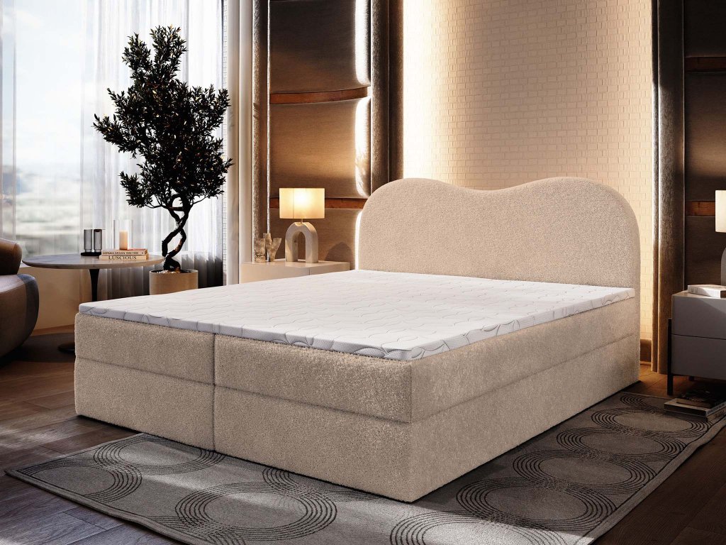 FLUVIA N ágyneműtartós boxspring ágy 140x200 - bézs