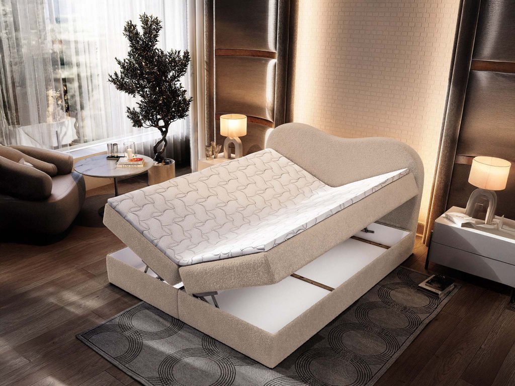 FLUVIA N ágyneműtartós boxspring ágy 180x200 - bézs