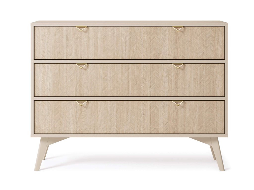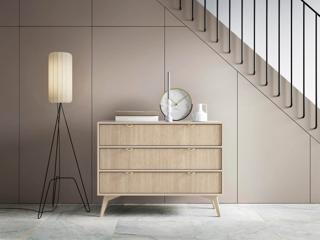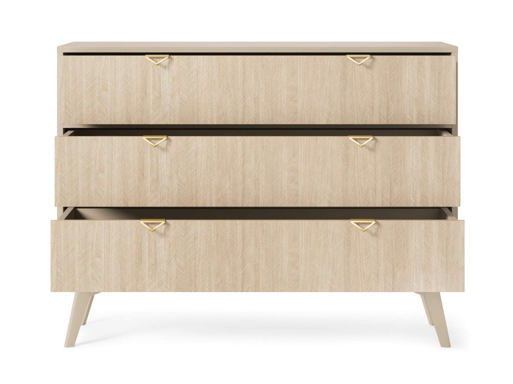 A Forest háromfiókos komód a funkcionalitás és a stílus ötvözete. Ez a modern skandináv stílusú komód minden belső térbe eleganciát visz majd. A neutrális bézs szín könnyen kombinálható más bútor elemekkel. A 106 cm szélességének és a három praktikus fióknak köszönhetően számos helyet biztosít az alsóneműknek, zokniknak vagy egyéb ruhaneműnek.